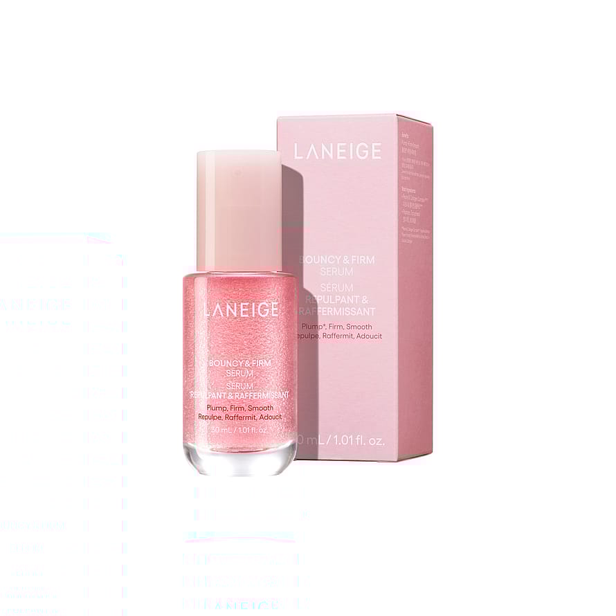 LANEIGE Bouncy & Firm Serum tekee ihosta kiinteämmän ja heleämmän näköisen. Kevyt koostumus torjuu ikääntymisen merkkejä peptidiveden, pionin, kollageenikompleksin ja niasiiniamidin avulla. SmoothTech-kapselit, joissa on C- ja E-vitamiinia, tukevat ihon kimmoisuutta, kirkastavat ja kosteuttavat tehokkaasti. Iho näyttää täyteläiseltä, raikkaalta ja tasaiselta.