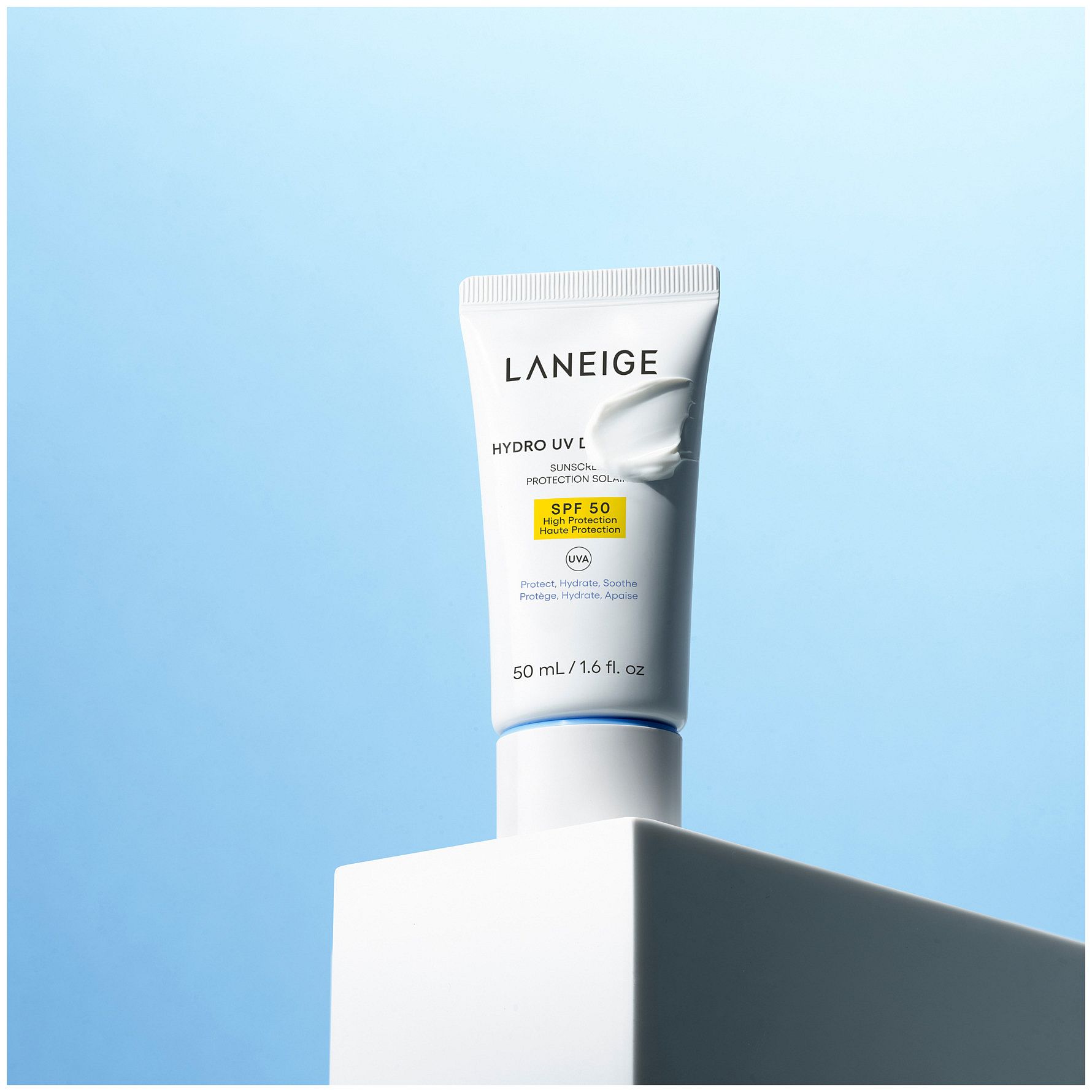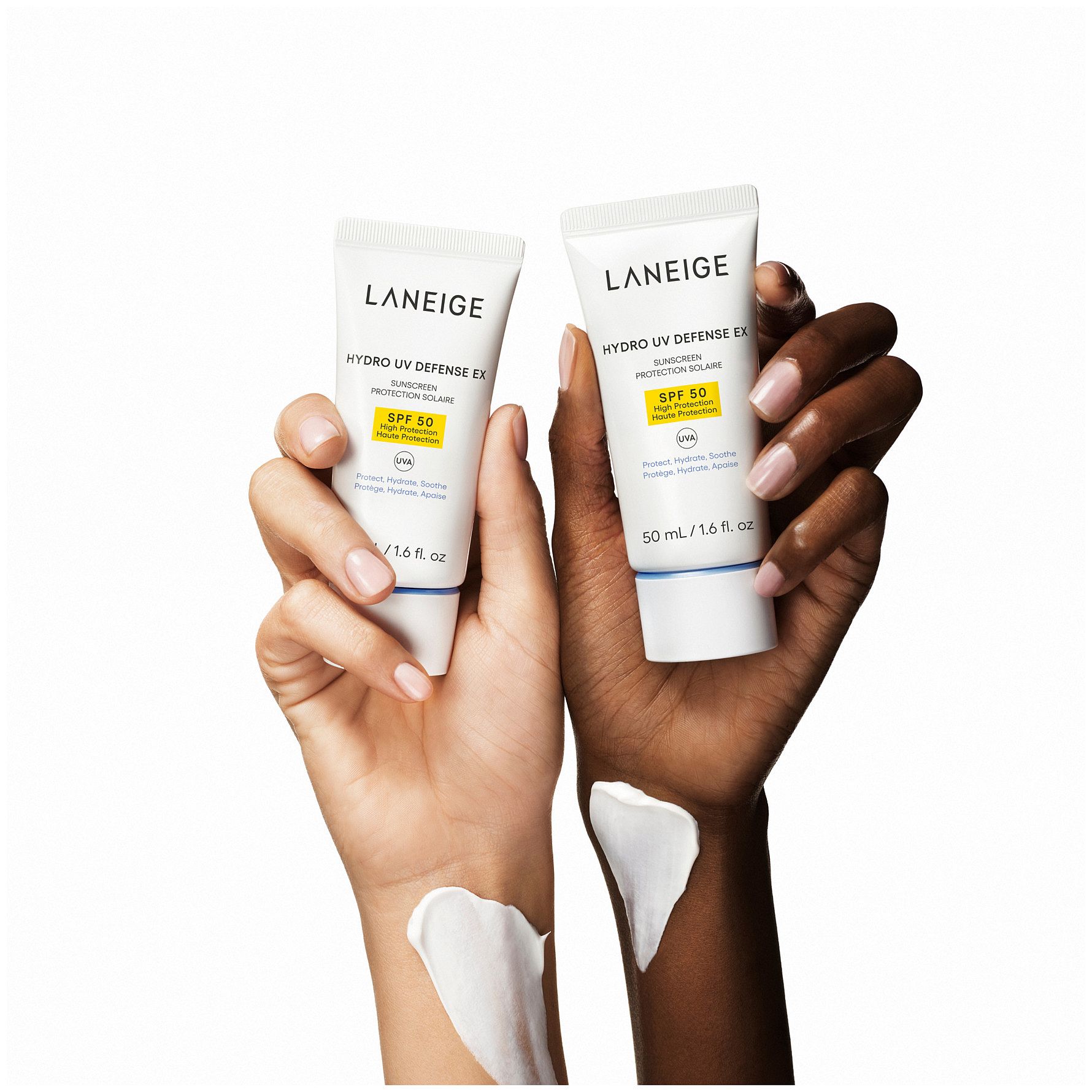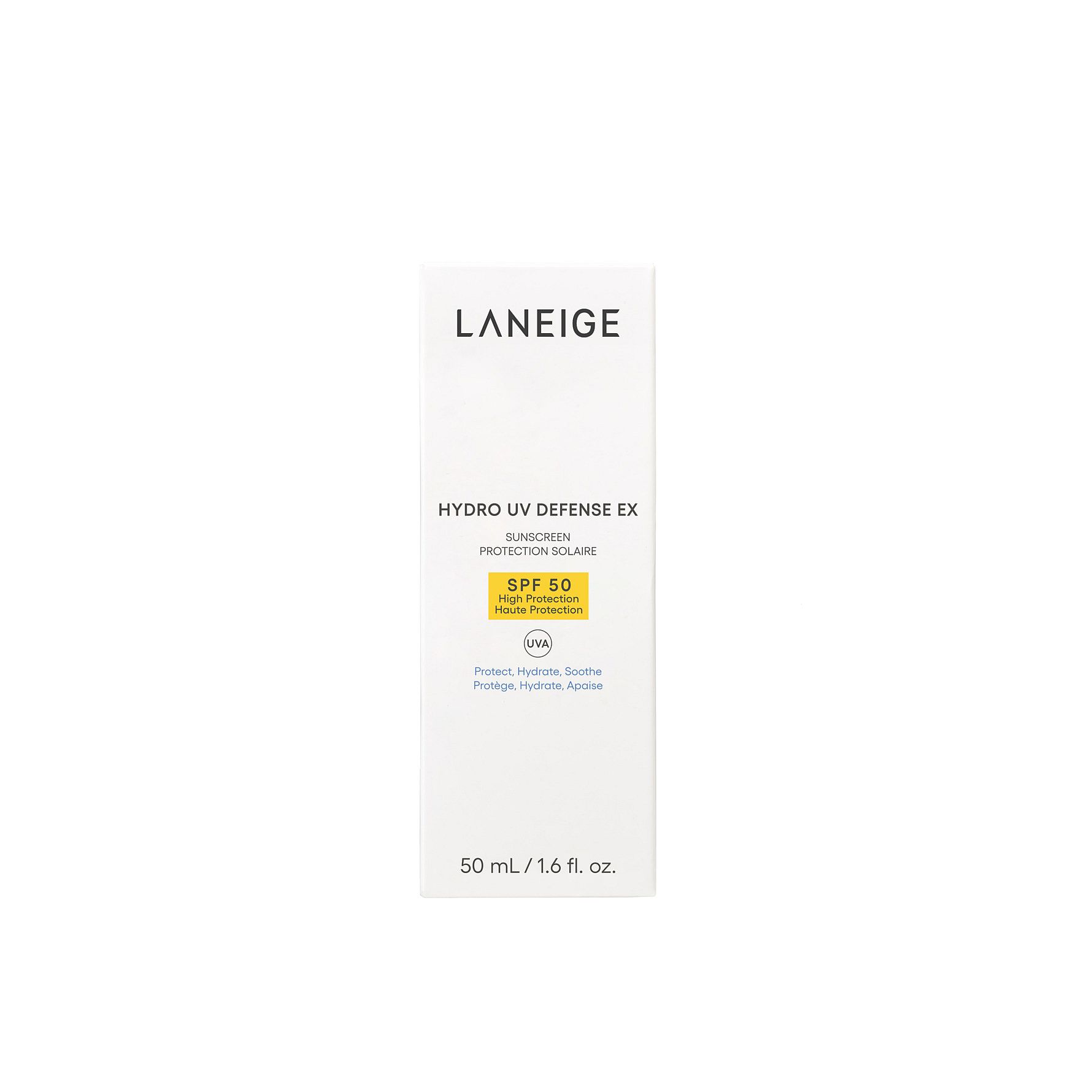 LANEIGE Hydro UV Defence EX on kevyt aurinkovoide päivittäiseen käyttöön, joka suojaa ihoa SPF 50+ -tason UVA- ja UVB-säteilyltä. Vesimäinen koostumus imeytyy nopeasti eikä tunnu tahmealta. Hydro-ionisoitu mineraalivesi ja madecassoside auttavat rauhoittamaan ja kosteuttamaan ihoa. Iho tuntuu raikkaalta, pehmeältä ja hyvin suojatulta koko päivän.