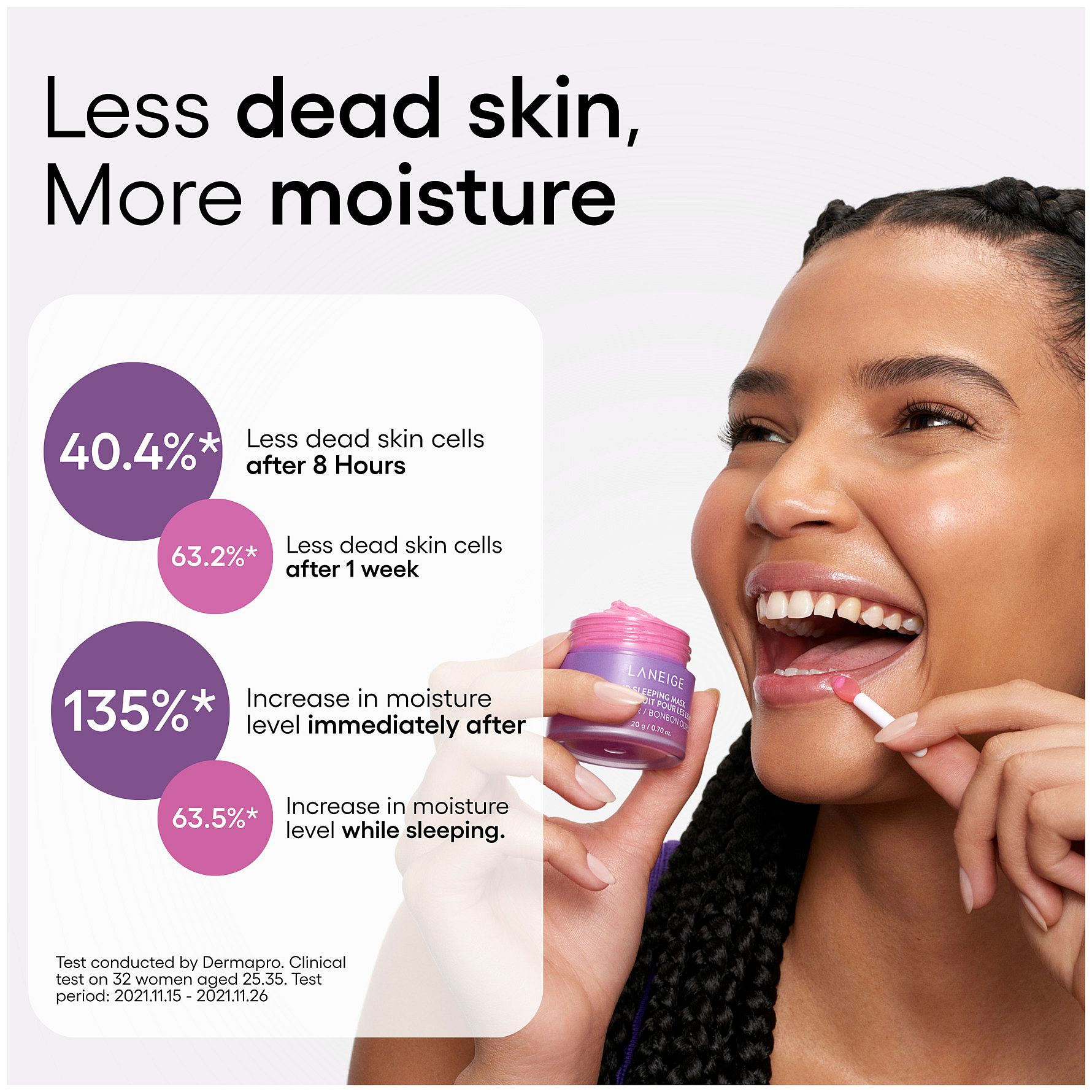 LANEIGE Lip Sleeping Mask on myydyin huulinaamio, joka ravitsee intensiivisesti ja tekee huulista pehmeät ja täyteläiset. Saatavilla herkullisissa mauissa, auttaa vähentämään kuivuutta ja rohtumia. Moisture Wrap™ -teknologia muodostaa suojaavan kalvon, joka lukitsee kosteuden. Hyaluronihappo ja mineraalit kosteuttavat tehokkaasti. Berry Mix Complex™ sisältää vadelmaa, mansikkaa, karpaloa ja mustikkaa – sheavoi pehmentää ja hoitaa. Levitä iltaisin ennen nukkumaanmenoa. Mukana kätevä applikaattori.