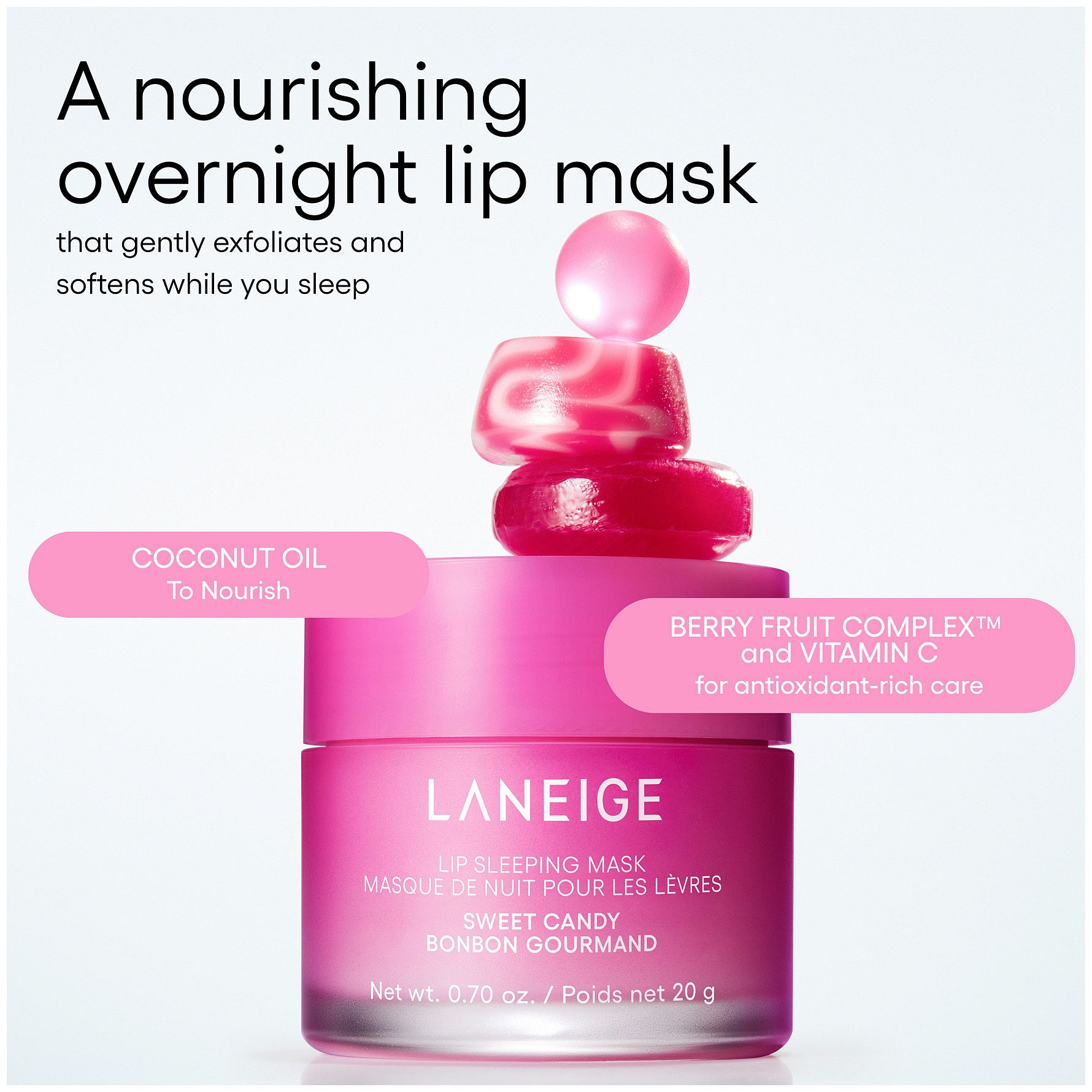 LANEIGE Lip Sleeping Mask on myydyin huulinaamio, joka ravitsee intensiivisesti ja tekee huulista pehmeät ja täyteläiset. Saatavilla herkullisissa mauissa, auttaa vähentämään kuivuutta ja rohtumia. Moisture Wrap™ -teknologia muodostaa suojaavan kalvon, joka lukitsee kosteuden. Hyaluronihappo ja mineraalit kosteuttavat tehokkaasti. Berry Mix Complex™ sisältää vadelmaa, mansikkaa, karpaloa ja mustikkaa – sheavoi pehmentää ja hoitaa. Levitä iltaisin ennen nukkumaanmenoa. Mukana kätevä applikaattori.