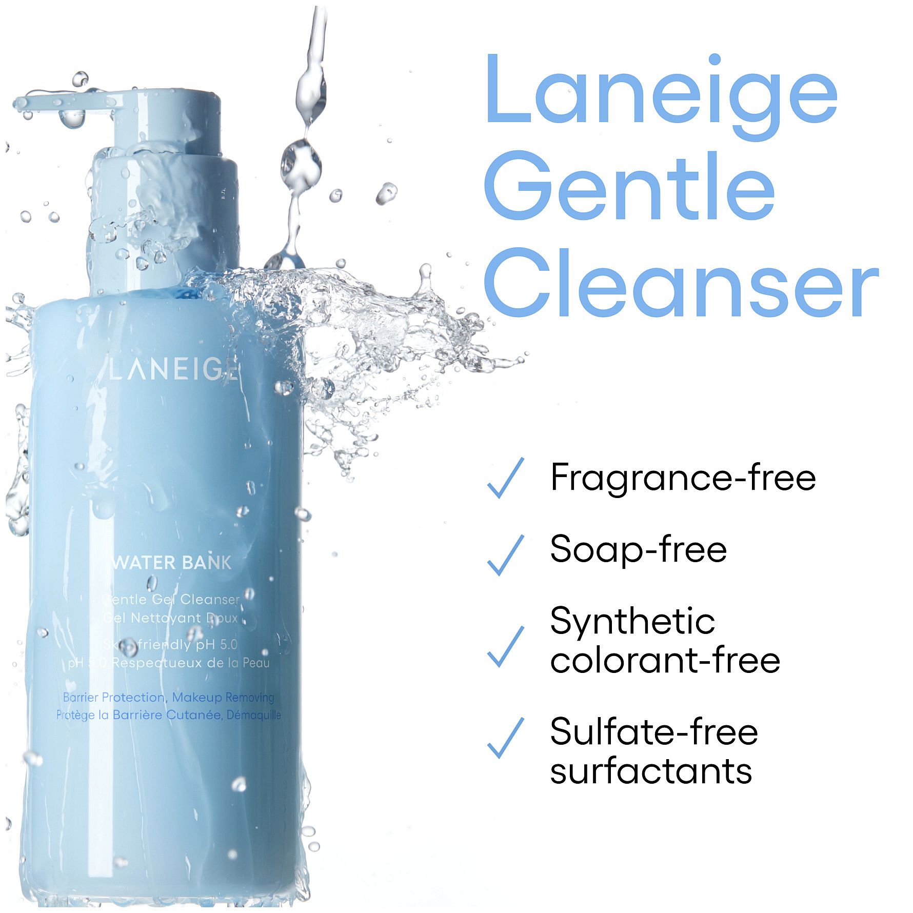 Puhdista iho hellävaraisesti mutta tehokkaasti LANEIGE Water Bank Gentle Gel Cleanserilla. Matalan pH:n geeli poistaa meikin, epäpuhtaudet ja aurinkosuojan kuivattamatta ihoa. Sininen hyaluronihappo, allantoiini ja aminohappoyhdistelmä kosteuttavat ja rauhoittavat. Geelistä muodostuu pehmeä vaahto, joka huuhtoutuu helposti pois. Iho jää puhtaaksi, pehmeäksi ja joustavaksi. Sopii normaalille ja kuivalle iholle. Dermatologisesti testattu.