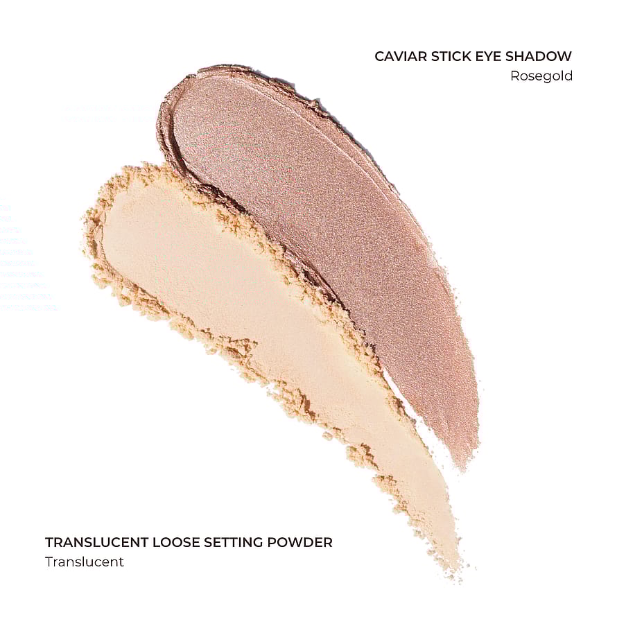 CAVIAR STICK ROSEGOLD: DIMETHICONE, MICA, TRIMETHYLSILOXYSILICATE, SILICA, SYNTHETIC WAX, POLYETHYLENE, STEAROXYMETHICONE/DIMETHICONE COPOLYMER, STEARYL DIMETHICONE, CAPRYLYL METHICONE, CALCIUM SODIUM BOROSILICATE, OCTADECENE, COPERNICIA CERIFERA (CARNAUBA) WAX (COPERNICIA CERIFERA CERA/CIRE DE CARNAUBA), POLYSILICONE-11, DISTEARDIMONIUM HECTORITE, CAPRYLIC/CAPRIC TRIGLYCERIDE, PENTAERYTHRITYL TETRA-DI-T-BUTYL HYDROXYHYDROCINNAMATE, PROPYLENE CARBONATE, POLYHYDROXYSTEARIC ACID, BRASSICA CAMPESTRIS (RAPESEED) SEED OIL, RICINUS COMMUNIS (CASTOR) SEED OIL, SODIUM HYALURONATE, HYDROGENATED CASTOR OIL, POLYGONUM TINCTORIUM LEAF EXTRACT, RUBUS IDAEUS (RASPBERRY) LEAF EXTRACT, BHT, DICALCIUM PHOSPHATE, TIN OXIDE. +/- (MAY CONTAIN/PEUT CONTENIR) TITANIUM DIOXIDE (CI 77891), IRON OXIDES (CI 77491, CI 77492, CI 77499), YELLOW 5 LAKE (CI 19140).TRANSLUCENT LOOSE SETTING POWDER: TALC, MAGNESIUM MYRISTATE, NYLON-12, CAPRYLIC/CAPRIC TRIGLYCERIDE, ETHYLHEXYL PALMITATE, ZEA MAYS (CORN) STARCH, METHICONE, LAUROYL LYSINE, POLYMETHYL METHACRYLATE, ASCORBYL PALMITATE, GLYCINE SOJA (SOYBEAN) OIL, TOCOPHEROL, METHYLPARABEN, SODIUM DEHYDROACETATE, PROPYLPARABEN, BUTYLPARABEN. MAY CONTAIN/PEUT CONTENIR/(+/-): IRON OXIDES (CI 77491, CI 77492, CI 77499), TITANIUM DIOXIDE (CI 77891), YELLOW 5 LAKE (CI 19140), ULTRAMARINES (CI 77007).