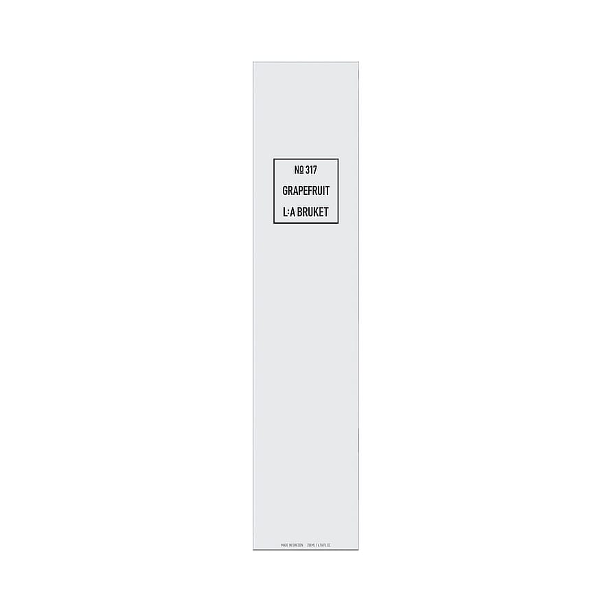 La Bruket vangitsee välittömän kokemuksen greippifrugin avaamisesta käsin. Sen mehu ja kuori sekoittuvat yhteen intensiivisen elinvoiman kiihkeässä virrassa. Hehkuva eteerinen öljy valuu lähes pois hedelmälihasta, tipat leijuvat ympärilläsi ilmassa. Luo energisoivan ilmapiirin mihin tahansa huoneeseen.