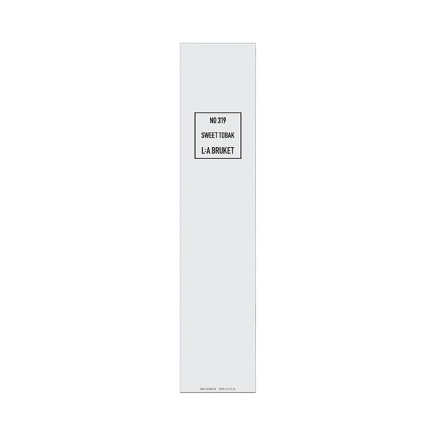 Vegaaninen ja biologisesti hajoava tuoksupohja on pakattu kierrätettävään amberväriseen lasipulloon, jossa on tummat luonnonrottinkitangot. Room Diffuser Sweet Tobak täyttää tilasi pitkään kestävillä tuoksuilla.