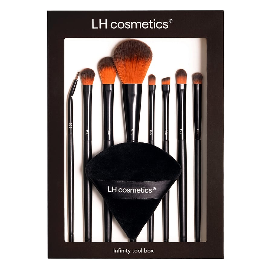 Infinity tool box on huippusetti meikkaamiseen. Se sisältää 8 sivellintä silmä- ja kulmameikkiin, kasvoille ja huulille sekä LH cosmeticsin puuterivipan, joka luo täydellisen lopputuloksen. Kaikki siveltimet sopivat puuteri-, neste- ja voidekoostumuksille. Siveltimet ovat täysin vegaanisia ja ne on valmistettu synteettisestä karvasta. Kädensija on FSC-sertifioitua puuta.