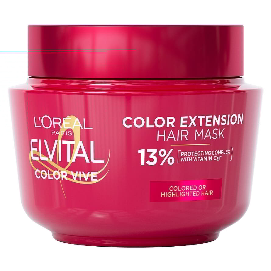 L'Oréal Paris Elvital Color-Vive Hair Mask -hiusnaamio hoitaa ja ravitsee värjättyjä hiuksia auttaen ylläpitämään niiden kiiltoa. Vahvistava hiusnaamio auttaa suojaamaan hiuksia ympäristön rasitteilta ja UV-säteilyltä parantaen hiusvärin kestoa. Hiusnaamion kevyt koostumus ei tee hiuksista raskaan tuntuisia.