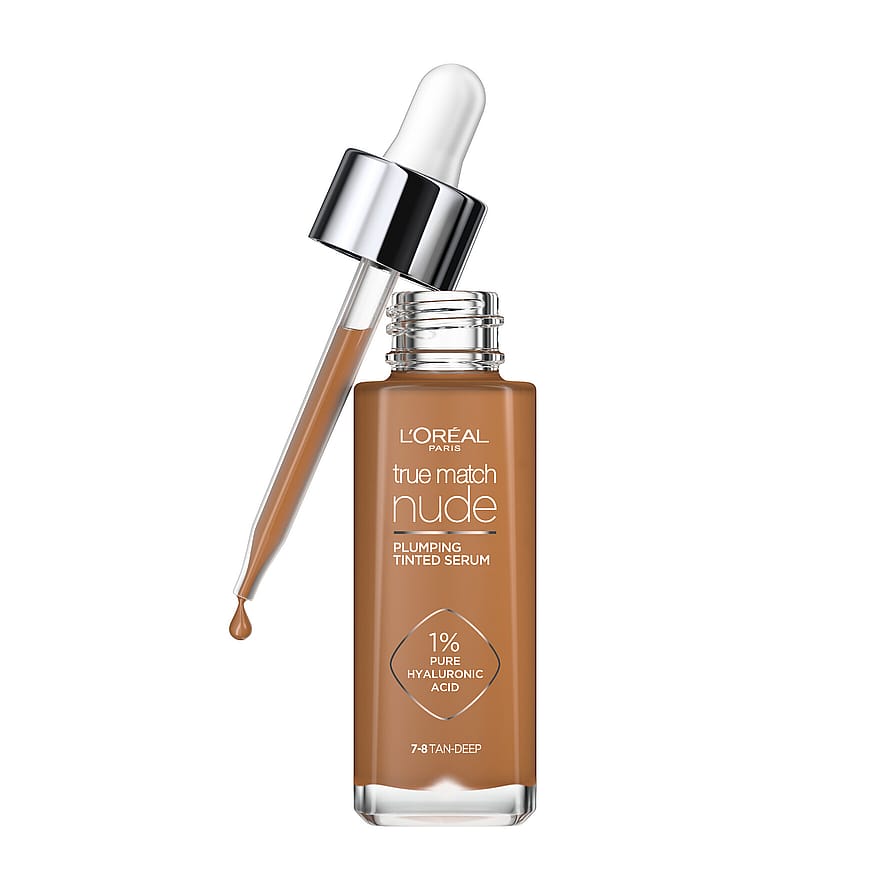 L'Oréal Paris True Match Nude Plumping Tinted Serum on hajusteeton seerumimeikkivoide, joka kosteuttaa ja täyteläistää ihoa. Sen sisältämät ainesosat, kuten 1% hyaluronihappoa, glyseriini ja mineraalipigmentit, tarjoavat kevyen peittävyyden tukkimatta ihohuokosia. Iho pysyy kosteutettuna ja täyteläisenä jopa 24 tuntia. Jo tunnin kuluttua iho on 24 % kosteutetumpi ja näkyvästi täyteläisempi*. Levitä muutama tippa kasvoille ja häivytä sulautumaan ihonsävyysi, lopputuloksena sileämpi ja luonnollisesti hehkuva iho! Dermatologisesti testattu. Sopii kaikille ihotyypeille, myös herkälle iholle.