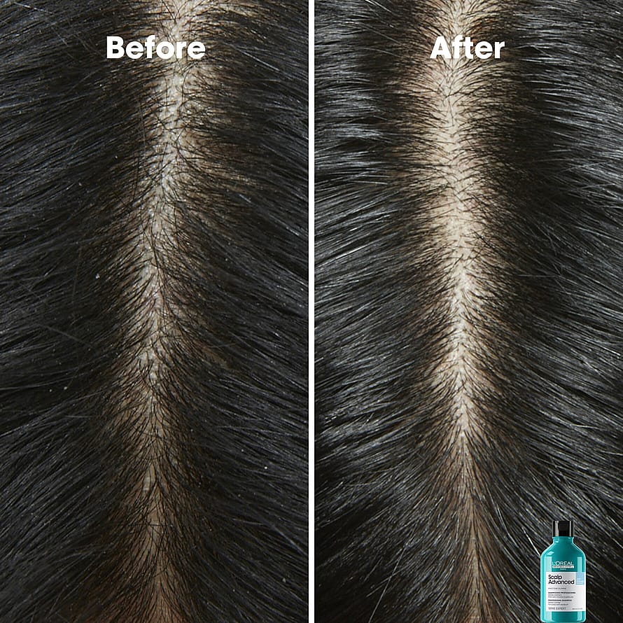 [PRO TIP]: Rasvaiselle hilseilylle, käytä shampoota edeltävänä tuotteena Scalp Advanced 2-in-1 deep purifier auttamaan poistamaan tehokkaasti tukkeumia.