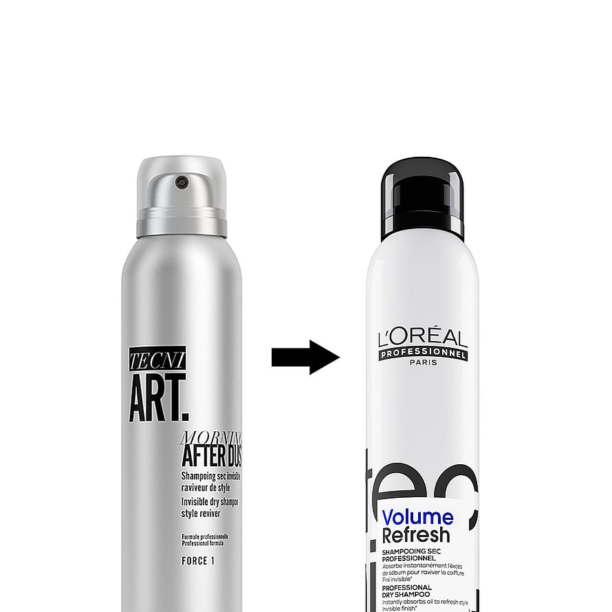 L'Oréal Professionnel Tecni.ART rasvaisuutta absorboiva näkymätön* kuivashampoo, joka tuoksuu raikkaalle 24h**. Ei sisällä alkoholia.