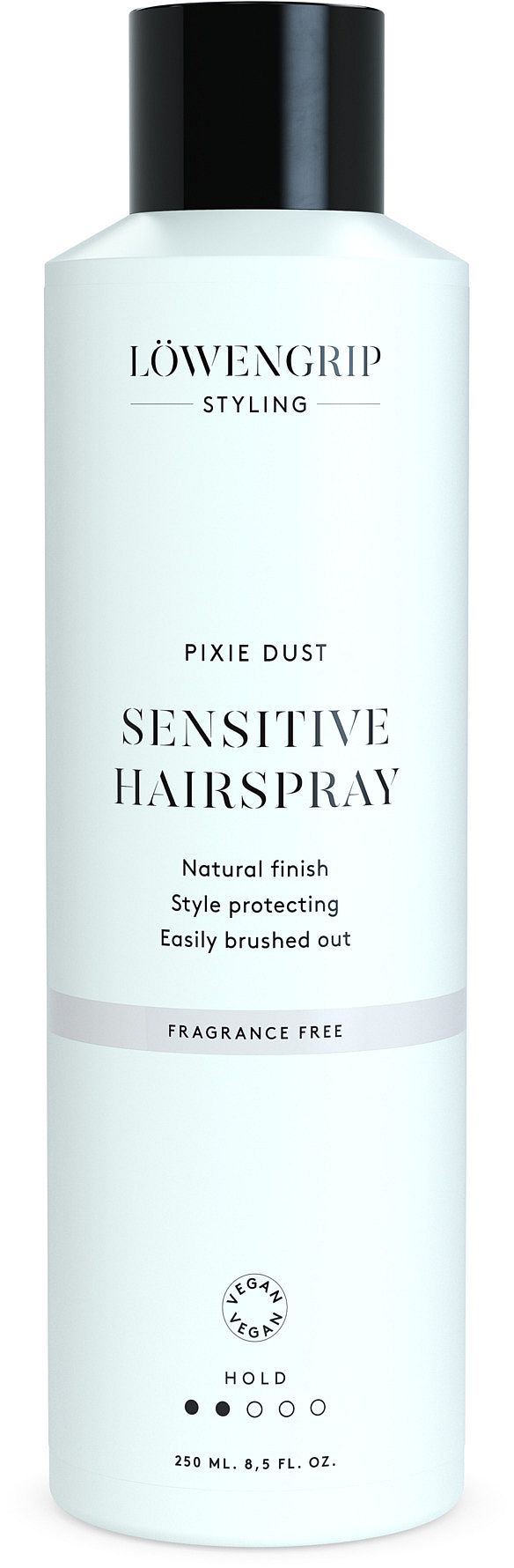 Kiinnitä kampaus Pixie Dust - Sensitive Hairspraylla, dermatologisesti testattu, hajusteeton ja höyhenenkevyt hiuslakka, joka pitää hiukset paikoillaan. Provitamiini B5 ravitsee ja antaa painottoman lopputuloksen volyymilla, kun taas hydrolysoitu soijaproteiini lisää kaunista kiiltoa ja rakennetta.