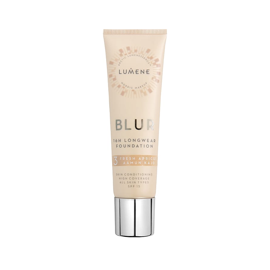 Blur Pitkäkestoisen meikkivoiteen peittävä koostumus häivyttää ihon pieniä virheitä ja ihohuokosia antaen virheettömän, puolimatan lopputuloksen. Täyteläinen koostumus sisältää kosteuttavaa pohjoista lähdevettä ja hoitavaa pohjoista kanervaa, joka auttaa tekemään koostumuksesta miellyttävän tuntuisen iholla. Koostumuksen innovatiivinen blur-teknologia häivyttää optisesti juonteita ja ihon epätasaisuuksia. SK15 suojaa ihoa auringon haitallista UVA- ja UVB-säteilyä vastaan. Hajusteeton koostumus sopii kaikille ihotyypeille. 100% vegaaninen. Valmistettu Suomessa. Tuubin valmistuksessa on käytetty kierrätysmuovia.