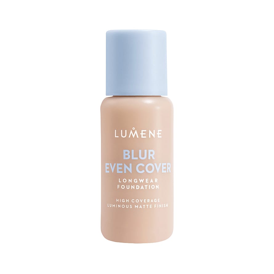 LUMENE Blur Even Cover Foundation tarjoaa korkean peittävyyden kevyellä koostumuksella ja luonnollisella, hehkuvalla mattapinnalla, joka kestää koko päivän. Niasiiniamidia ja pohjoismaisen mustikkauutteen ansiosta tämä ihoa hellivä meikkivoide auttaa tasoittamaan ja silottamaan ihoa sekä hallitsemaan kiiltoa, jotta meikki näyttää hehkuvalta mutta mattapintaiselta koko päivän ajan.