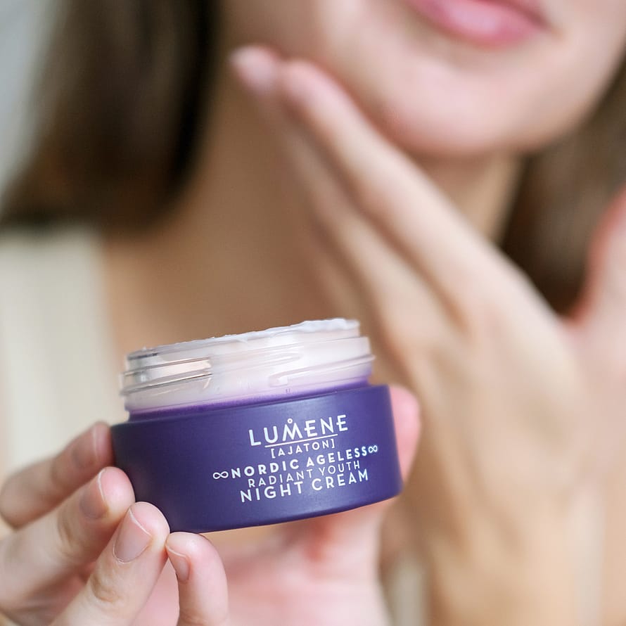 Luontaisen unirytmin inspiroima yövoide tukee ihosi luonnollista uudistumisprosessia yöllä, joka on erityisen tärkeä aika ihon uudistumisen ja palautumisen kannalta. Yövoiteen hoitava koostumus sisältää ihoa kiinteyttävää, kapseloitua kuparipeptidiä, suojaavaa puolukan kantasolua, kirkastavaa fermentoitua lakkaa ja rauhoittavaa kanervaa. Se auttaa häivyttämään hienojen juonteiden ja ryppyjen näkymistä, tehden ihosta nuorekkaan ja hehkuvan näköisen yön aikana. 100% vegaaninen. Valmistettu Suomessa.