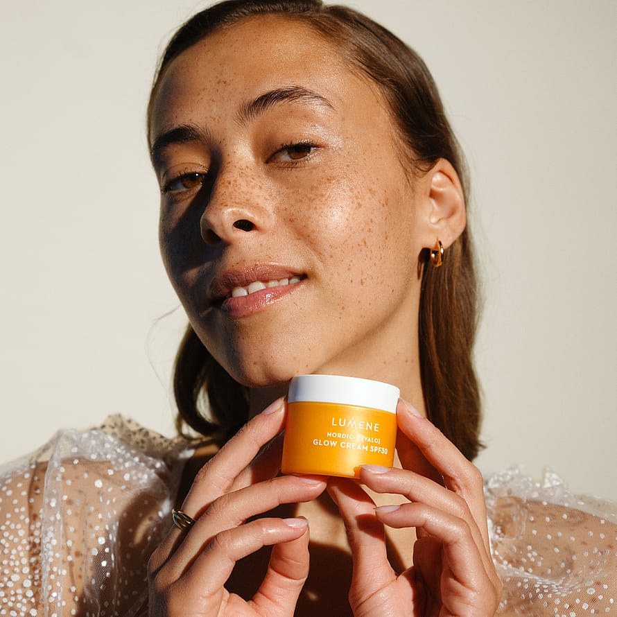 LUMENE Nordic-C [Valo] Heleyttävä kosteusvoide on kliinisesti testattu päivävoide joka kosteuttaa tehokkaasti ja kirkastaa ihoa tehden ihosta sileämmän ja hehkuvamman näköisen. Raikas geelivoidekoostumus saa tehonsa heleyttävästä pohjoisesta lakasta ja C-vitamiinista. Nyt tehostettuna yhdistelmällä hyaluronihappoa ja polyglutamiinihappoa, paranneltu koostumus heleyttää ihoa entistä tehokkaammin. Iho näyttää tasaisemmalta, täyteläisemmältä ja hehkuvammalta. Vegaaninen koostumus sisältää sivuvirroista saatavia ja luonnosta käsin poimittuja raaka-aineita. Valmistettu Suomessa.