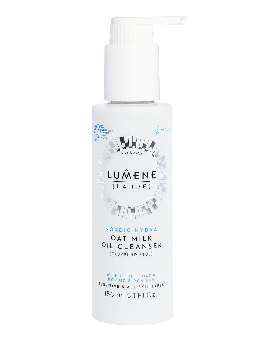 Lumene LÄHDE Kauramaito-öljypuhdistus puhdistaa pitkäkestoisen kasvo- ja silmämeikin, aurinkosuojakertoimen, lian ja muut epäpuhtaudet tehokkaasti mutta hellävaraisesti. Iho jää puhtaan, pehmeän ja kosteutetun tuntuiseksi. Silkkinen, hajusteeton öljy-vesi-emulsio sisältää hoitavaa pohjoista luomu kauramaitoa ja kauraöljyä, prebioottista pohjoista kauraksylitolia ja kosteuttavaa pohjoista luomu koivunmahlaa, ja se on erityisen hellävarainen ihon luonnolliselle kosteussuojamuurille ja mikrobiomille. Soveltuu kaikille ihotyypeille ja erityisesti kuivalle, pintakuivalle ja herkälle iholle. Sopii myös silmänympärysalueelle. Tuote on hajusteeton ja vegaaninen ja sisältää sivuvirroista saatavia ja pohjoisen luonnosta peräisin olevia raaka-aineita. Pakkauksen valmistuksessa on käytetty kierrätettäviä ja kierrätettyjä materiaaleja. Valmistettu Suomessa.