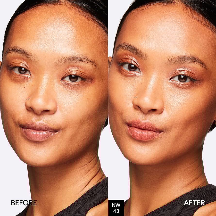 Kolmivaiheinen veden, pehmentävien aineiden ja puuterin sekoitus levittyy iholle pehmeänä, voidemaisena emulsiona, jonka koostumus on kevyt ja muuntautuva. Innovatiivinen hikoilua ja kosteutta kestävä koostumus antaa keskitasoisen kerrostettavan peittävyyden ja mahdollistaa luonnollisen sävyisen mattapinnan ihonsävystä riippumatta. Valoa hajauttavat ominaisuudet pehmentävät juonteita luoden raikkaan ja virheettömän rakenteen kaikille ihotyypeille. Koostumus kosteuttaa ihoa välittömästi ja pitkäkestoisesti, kestää 12 tuntia eikä aiheuta aknea. Nyt saatavana 42 all-inclusive-sävyssä.