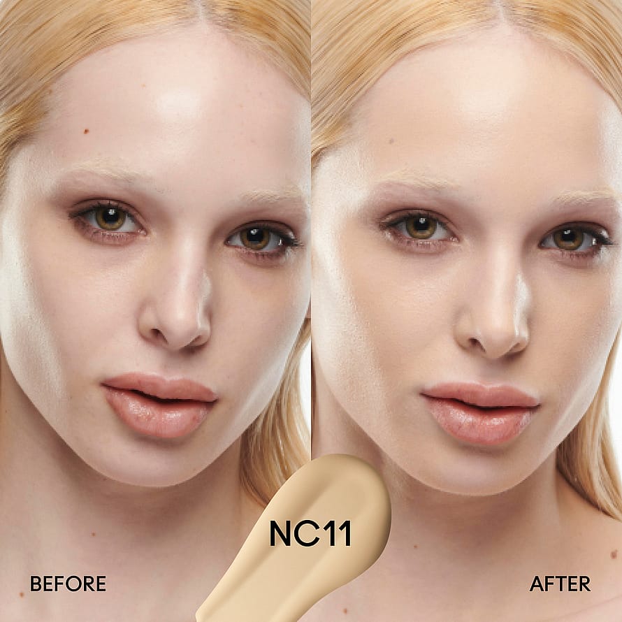 Sisältää seerumia, joka saa ihosi hehkumaan. Tutustu seerumipohjaiseen meikkivoiteeseen, jossa ihonsävyjen asiantuntemuksemme yhdistyy ihonhoidon tieteeseen. Tämä upouusi innovaatio kosteuttaa +209 % tehden ihosta täyteläisemmän, sileämmän ja hehkuvamman. Mullistava meikkivoiteemme antaa iholle myös kosteutettua ja terveemmän näköistä hehkua koko päiväksi. Sen hoitava 80 % pohjustus sisältää 33 ihoa hoitavaa ainesosaa, kuten 10 % hyaluronihappoliuosta, joka lukitsee kosteuden ihon pinnan alle. Se sisältää myös yhdistelmän ihoa ravitsevia ainesosia, kuten oliivi- ja jojobaöljyjä, jotka hoitavat ihoa antaen sille terveemmän näköistä hehkua, sekä E-vitamiinia, joka suojaa ihoa saasteilta ja siniseltä valolta. Studio Radiance Serum-Powered™ Foundation tarjoaa 24 tuntia kosteutusta ja keskipeittävän kerrostettavan koostumuksen, joka tasoittaa ihon välittömästi. Tämä kevyt meikkivoide häivyttää myös ihohuokosia, ihon punoitusta, tummia läiskiä ja juonteita. Tämä meikkivoide antaa ainutkertaista hehkua Artist-Curated Radiance Blend -sekoituksella, joka on valmistettu hopean ja kullanhohtoisista hiukkasista. Suunniteltu erityisesti täydentämään ainutlaatuisia vaalean ja täyteläisen ihon vivahteita. Saatavana 56 hohtavaa sävyä kaikille. Kierrätettävä lasinen meikkivoidepullo on valmistettu kestävää kehitystä ajatellen. Korkki on valmistettu 30 % PCR-muovista. •+209 % välitöntä kosteutusta* tekee ihosta täyteläisemmän, sileämmän ja hehkuvamman