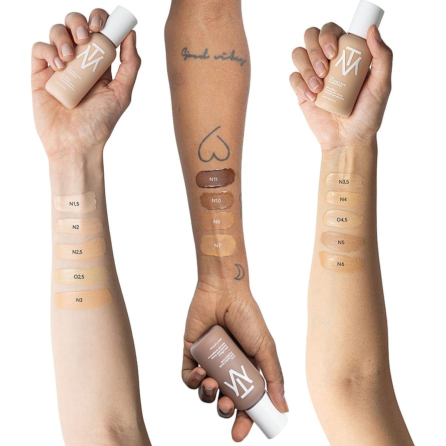 Cica Buildable Base Foundation on meikkivoide, jonka peittävyyttä voidaan räätälöidä optimaalisesti koko päivän ajaksi. Helposti levitettävää koostumusta voidaan kerrostaa hehkuvasta ja kuultavasta pohjasta täysin peittävään ja täydelliseen pohjustukseen, joka loihtii pois pienet virheet ja epätasaisuudet. Se pysyy paikallaan koko päivän ihoa tukkimatta. Koostumus sisältää niasiiniamidia, joka ajan myötä lisää ihon kimmoisuutta ja skvalaania, joka vahvistaa ihon suojakerrosta. E-vitamiini yhdessä antioksidanttien kanssa suojaa vapailta radikaaleilta ja rauhoittaa ihoa. Saatavana 14 sävyä. Meikkivoide, jossa on räätälöitävä peittävyysaste. Antaa iholle luonnollista hehkua. Vahvistaa ihon suojakerrosta ja suojaa vapailta radikaaleilta. "N1,5 - Erittäin vaalea iho, jossa viileä pohjasävyN2 - Erittäin vaalea iho, jossa lämmin / neutraali pohjasävy02,5 - Vaalea iho, jossa oliivi pohjasävyN2,5 - Vaalea iho, jossa neutraali pohjasävyN3 - Vaalea iho, jossa lämmin pohjasävyN3,5 - Vaalea tai keskivaalea iho, jossa neutraali pohjasävyN4 - Vaalea tai keskivaalea iho, jossa lämmin pohjasävyO4,5 - Vaalea tai keskivaalea iho, jossa oliivi pohjasävyN5 - Keskivaalea iho, jossa lämmin / neutraali pohjasävyN6 - Keskivaalea iho, jossa lämmin pohjasävyN7 - Keskivaalea tai tumma iho, jossa lämmin pohjasävyN8 - Keskivaalea tai tumma iho, jossa lämmin / neutraali pohjasävyN10 - Keskivaalea tai tumma iho, jossa neutraali pohjasävyN11 - Keskivaalea tai tumma iho, jossa neutraali / kylmä pohjasävy"