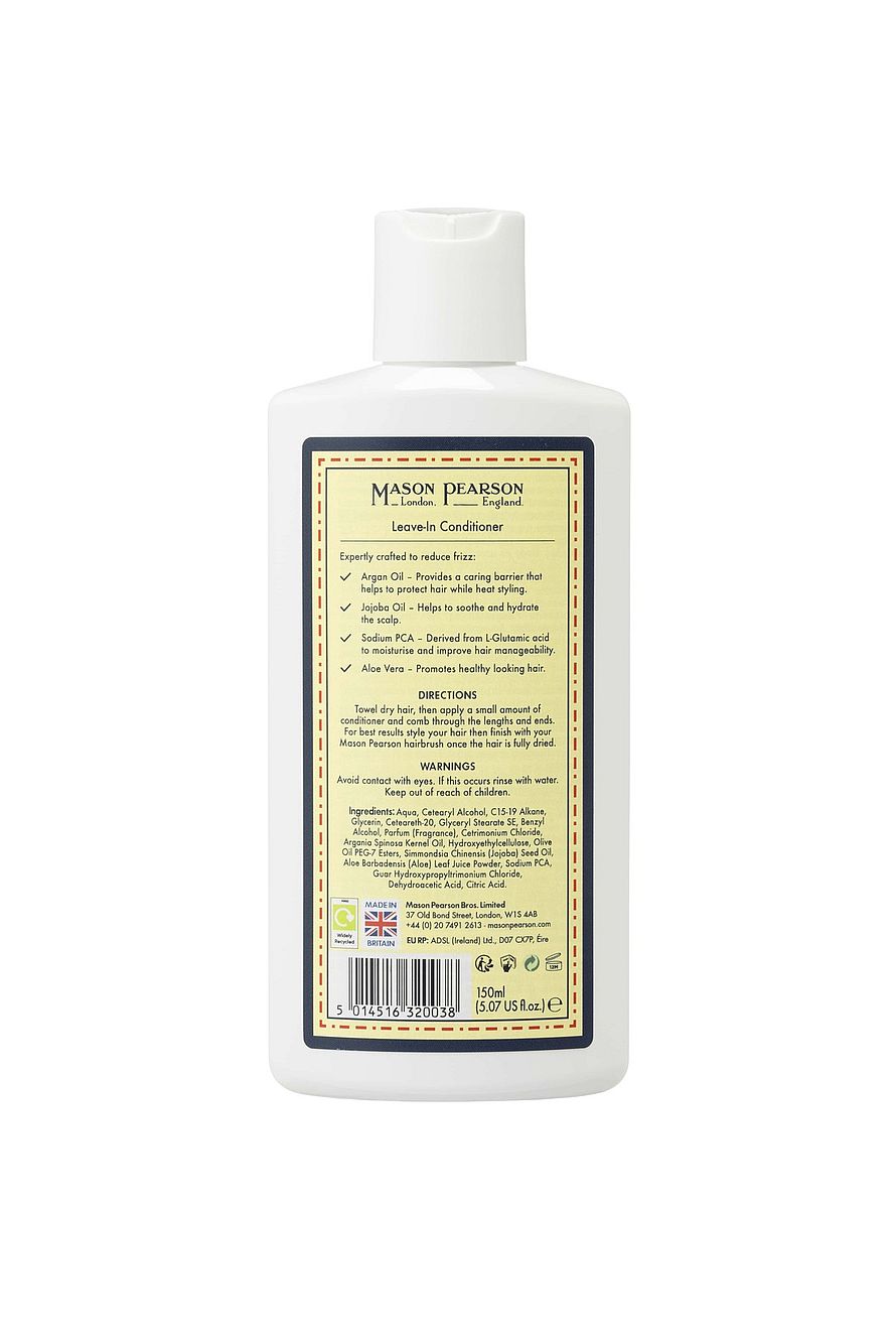 Mason Pearson Leave-In Conditioner on monikäyttöinen, kevyt ja ei-rasvainen päivittäinen hoitoaine, joka on suunniteltu hiuksista rakastettavilla ainesosilla tarjoamaan lisäkosteutusta, kiiltoa ja suojaa. Ihanteellinen kaikille hiustyypeille, erityisesti haaroittuneille, hallitsemattomille ja kosteutta kaipaaville hiuksille.