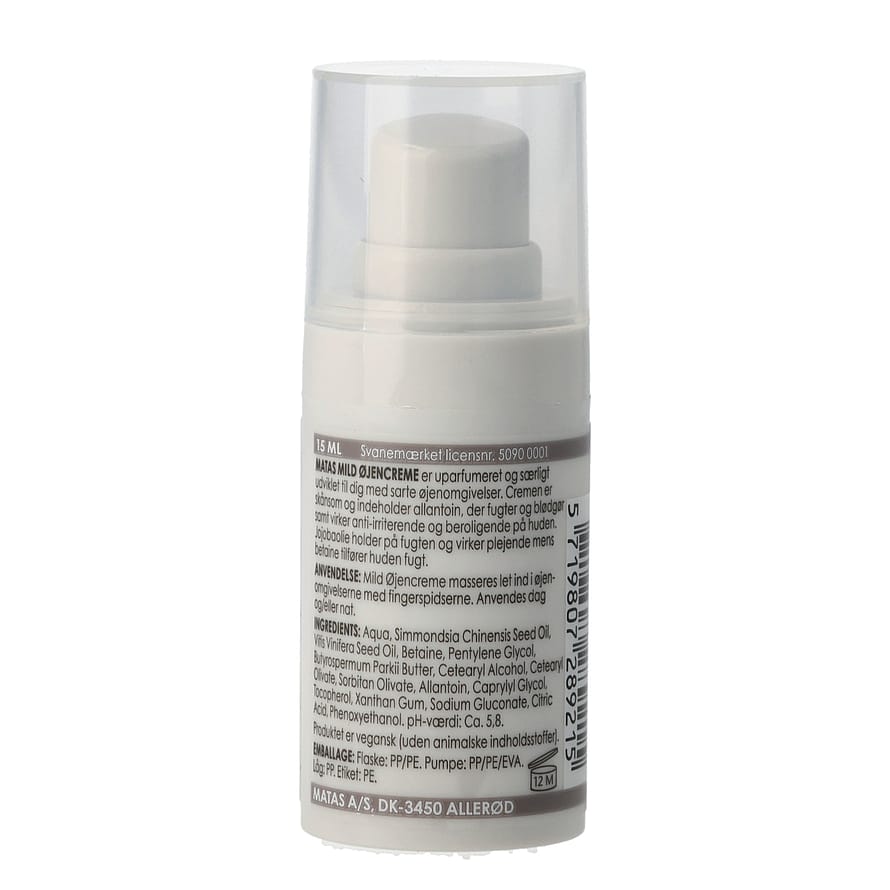 Matas Hellävarainen Silmänympärysvoide on hajusteeton ja kehitetty erityisesti herkille silmänympäryksille. Sillä on sekä tanskalainen allergiatunnus että Joutsenmerkki. Herkälle iholle on erityisen tärkeää löytää hellävaraista ja intensiivistä hoitoa silmien ympärillä olevalle herkälle iholle, joka sekä kosteuttaa että rauhoittaa. Silmänympärysalue on myös ensimmäinen paikka, joka osoittaa selviä väsymyksen merkkejä, joten se hyötyy intensiivisesti hoitavasta silmänympärysvoiteesta. Matas Hellävarainen Silmänympärysvoide sisältää allantoiinia, joka kosteuttaa ja pehmentää sekä vaikuttaa ärsytystä estävästi ja rauhoittavasti ihoon. Tuotteeseen lisätty jojobaöljy säilyttää kosteuden ja hoitaa, kun taas betaiini kosteuttaa ihoa.