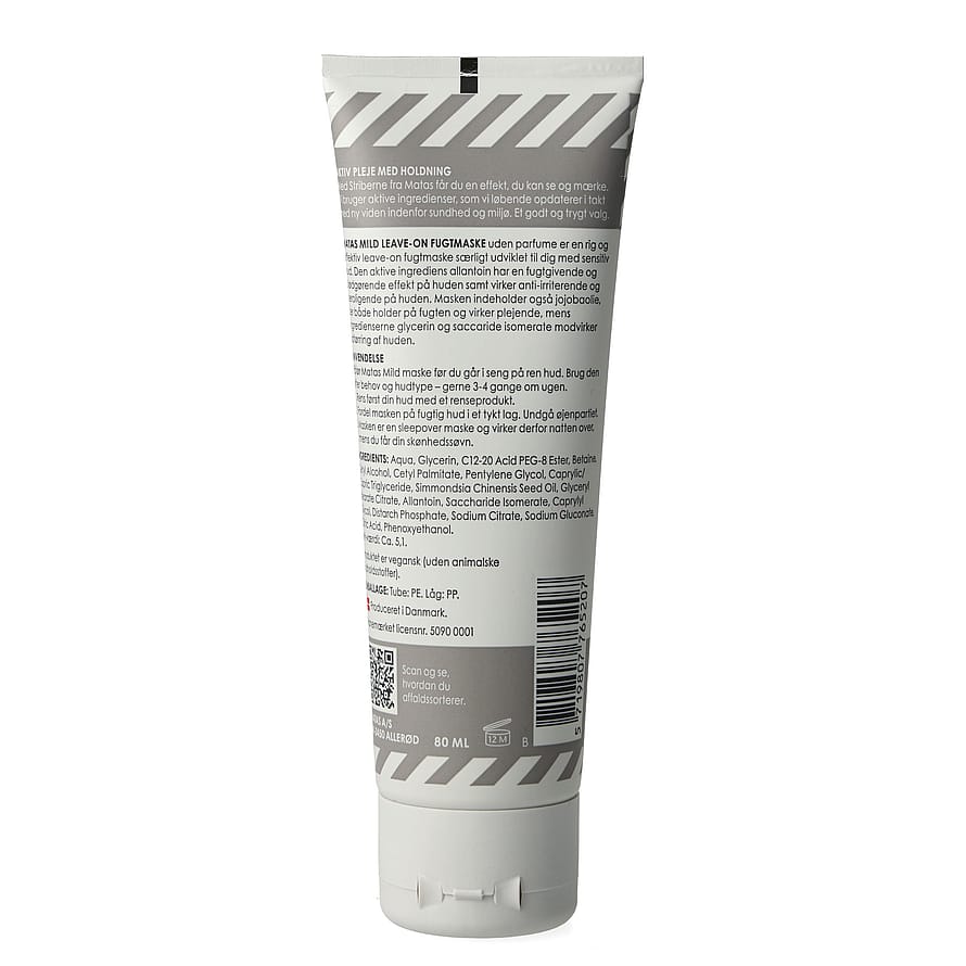 Matas Hellävarainen Leave-On-kosteusnaamio on ravitseva ja tehokas leave-on-kosteusnaamio, joka on kehitetty erityisesti herkälle iholle. Aktiivinen ainesosa allantoiini kosteuttaa ja pehmentää ihoa sekä toimii ärsytystä vähentävästi ja rauhoittavasti. Naamio sisältää myös jojobaöljyä, joka säilyttää kosteuden ja hoitaa ihoa. Lisäksi glyseriini ja pentavitiini (sakkaridi-isomeraatti) ehkäisevät kosteuden poistumista.