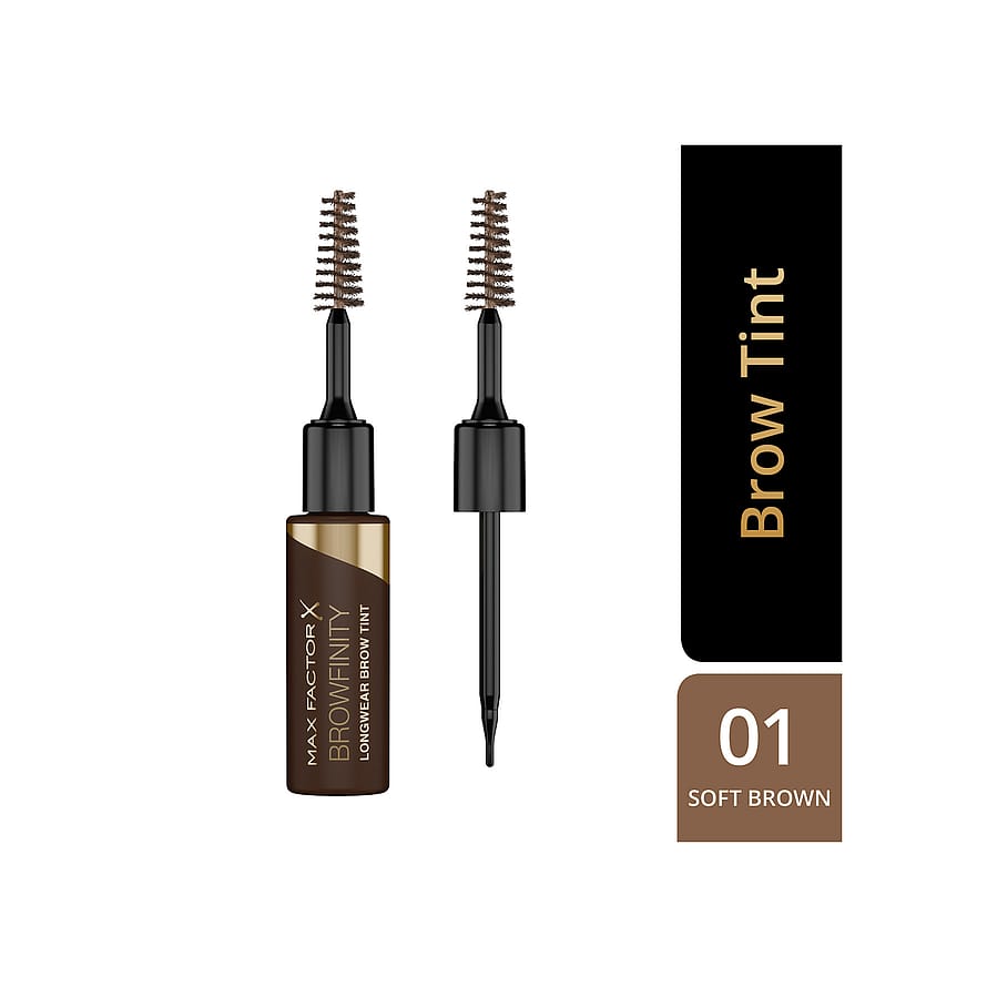 Luo koko päivän kestävät luonnollisen täyteläiset, korostetut ja värjätyt kulmakarvat Max Factor Browfinity Longwear Brow Tintillä. Brow Tint puolipysyvällä värjätyllä koostumuksella antaa kulmakarvoille luonnollisen värin, joka kestää monta päivää. Kaksoisapplikaattori korostaa kulmakarvoja samalla, kun sisäänrakennettu, erittäin pehmeä harja takaa pehmeän ja täyteläisen ilmeen. Browfinity Brow Tint on saatavissa kolmessa eri sävyssä; Soft Brown, Medium ja Dark Brown, jotka kaikki on valmistettu luonnollisesti värjätyllä pigmentillä, jotta kulmakarvasi näyttäisivät luonnollisilta.-- Vedenpitävä, hikoilulta ja tahroilta suojaava.- Nopeasti kuivuva koostumus, joka tuntuu kevyeltä kulmakarvoissa.- Välittömästi kestävä tulos.