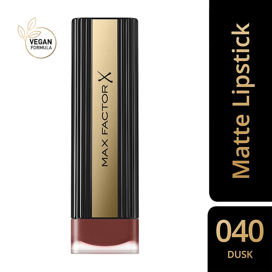 Eläviä värejä, mukavuutta ja kestävyyttä varten on Max Factor Colour Elixir Lipstick Velvet Matte. Se on mattapintainen huulipuna, jossa on korkea väripigmentti, ja se antaa rohkean lopputuloksen yhdellä vedolla – tarkasti ja ilman, että mukavuus kärsii. Vegaaninen koostumus on rikastettu hoitavilla, ihoa hellivillä ainesosilla kuten risiiniöljyllä, aloe veralla, sheavoilla ja avokadoöljyllä. Huulipuna sisältää luonnollisen kosteuttavan kompleksin, joka saa huulet tuntumaan ravituilta koko päivän – jopa sen jälkeen, kun olet poistanut punan. Sen kermainen, kevyt tunne ja pehmeä koostumus antavat täyden peittävyyden ja liukuvat tasaisesti. Se minimoi hienojen juonteiden näkyvyyden ja on saanut inspiraationsa pitkäkestoisesta täydellisyydestä, jonka Max Factor on mestaroinut.