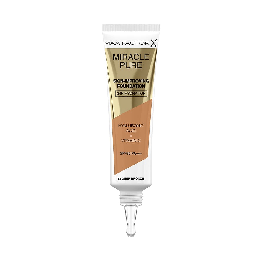 Max Factor esittelee uusimman ihmeensä Miracle Pure Skin-Improving Foundation. Meikkivoide on ihonhoidon ja kasvojenhoidon inspiroima, Max Factorilta. Meikki rikastettu hyaluronihapolla, ja tässä meikkivoiteessa yhdistyy kasvojenhoito ja kosmetiikka. On kliinisesti todistettu, että ihon hoito vain yhden minuutin ajan ja yhdellä tipalla ei anna iholle vain kaunista täyteläisyyttä vaan myös viisi muuta etua: enemmän heleyttä, voimaa, joustavuutta, kiinteyttä ja kimmoisuutta.-Se sisältää 89 % ihoa hoitavia ainesosia, kuten kollageenia vahvistavaa yhdistettä, C-vitamiinia ja hyaluronihappoa, ja kosteutta 24 tunnin ajan. Sopii täydellisesti kuivalle iholle. Kaikki tarvittava loistavalle meikkipohjalle samalla, kun iho voi hyvin.-- Miracle Pure Skin-Improving Foundation 16 sävyllä- Keskipeittävä, jota voidaan lisätä- SPF 30PA+++ UVA/UVB-Dermatologisesti testattu- Sopii kaikille ja erityisesti silloin, jos etsit yhdistettyä meikkivoidetta ja ihon hoitotuotetta