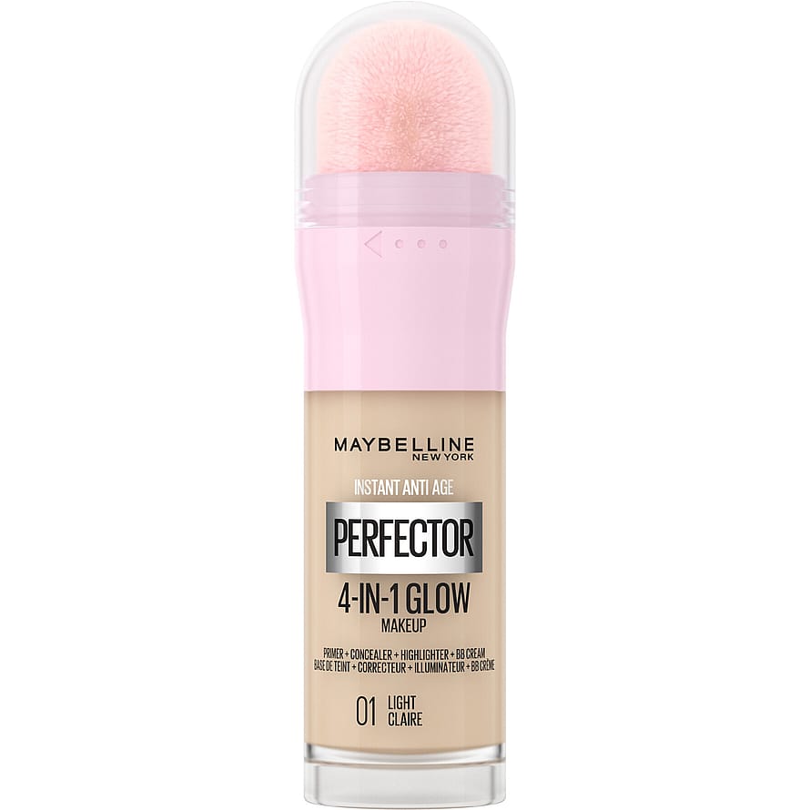 Instant Perfector 4-In-1 Glow Makeup nestemäinen meikkituote antaa iholle hehkua ja kasteisen lopputuloksen. All-in-1 tuotteen koostumus tasoittaa ihon sävyä ja sisältää heleyttä antavia pigmenttejä, jotka antavat iholle sametinpehmeän lopputuloksen.
