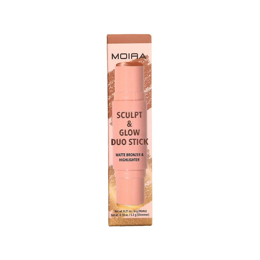 "MOIRA Sculpt & Glow Duo Stick on täydellinen yhdistelmätuote, joka on pakattu yhteen kätevään puikkoon. Toisessa päässä puikkoa on voidemainen aurinkopuuteri ja toisessa päässä puolestaan voidemainen korostusväri. Tämä monipuolinen tuote mahdollistaa ammattimaisen meikin luomisen helposti ja nopeasti. Voidemainen aurinkopuuteri luo ihanaa lämpöä kasvoillesi, kun taas voidemainen korostusväri tuo esiin parhaat piirteesi, antaen ihollesi säteilevän hehkun.