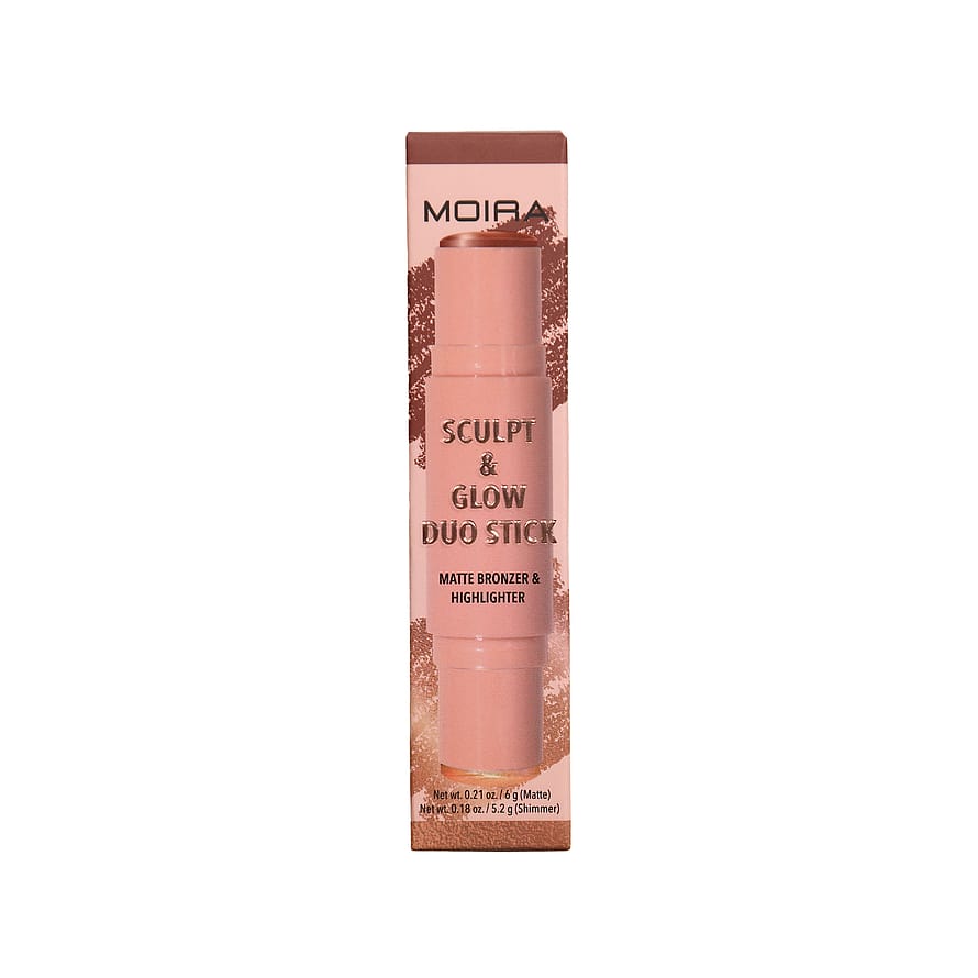 "MOIRA Sculpt & Glow Duo Stick on täydellinen yhdistelmätuote, joka on pakattu yhteen kätevään puikkoon. Toisessa päässä puikkoa on voidemainen aurinkopuuteri ja toisessa päässä puolestaan voidemainen korostusväri. Tämä monipuolinen tuote mahdollistaa ammattimaisen meikin luomisen helposti ja nopeasti. Voidemainen aurinkopuuteri luo ihanaa lämpöä kasvoillesi, kun taas voidemainen korostusväri tuo esiin parhaat piirteesi, antaen ihollesi säteilevän hehkun.