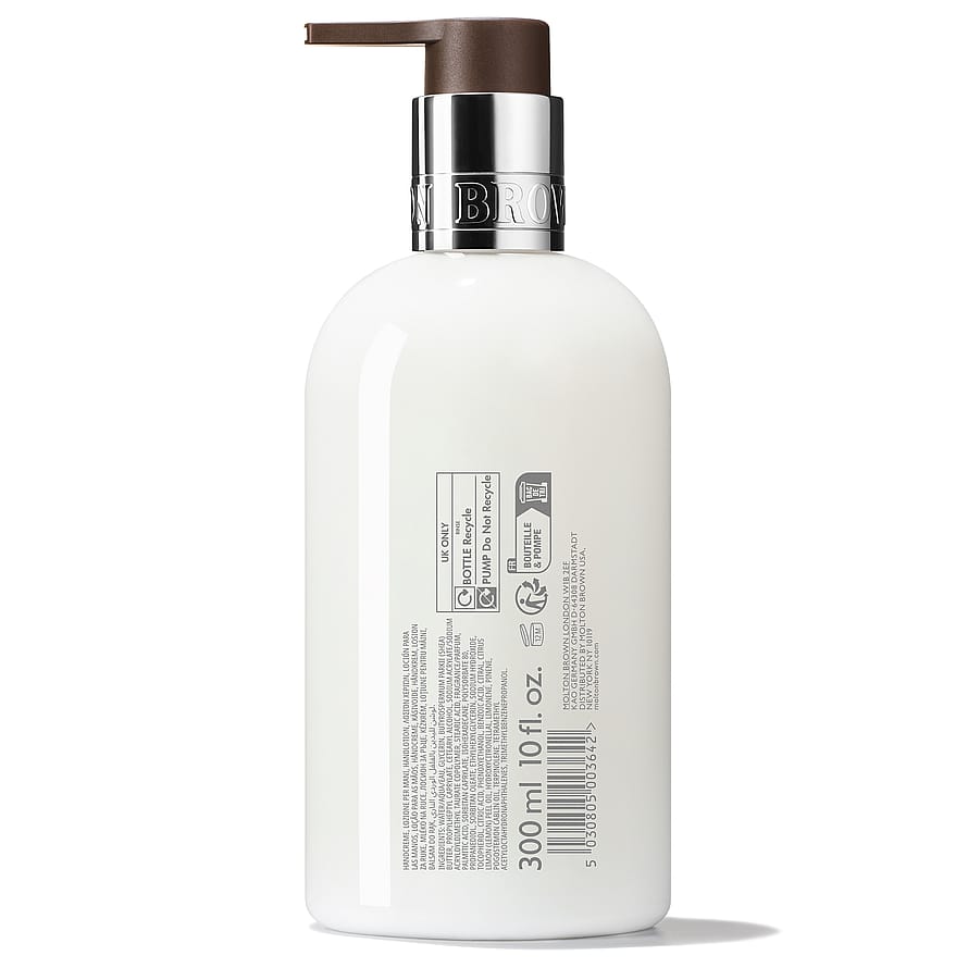 Molton Brown Fiery Pink Pepper Hand Lotion sisältää ihoa hoitavia ainesosia, jotka kosteuttavat, ravitsevat ja suojaavat käsiä. Sisältää mausteisen roseepippurin, lämpimän inkiväärin ja täyteläisen patsulin nuotteja. Käytä yhdessä yhteensopivan Molton Brown -käsisaippuan kanssa vahvistaaksesi virkistäviä ja eloisia tuoksunuotteja.