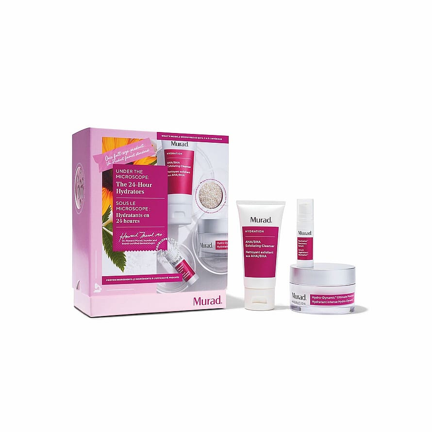 Saat matkakoot palkituista AHA/ BHA Exfoliating Cleanseristä ja Revitalixir Recovery Seerumista. Tuotesetti Muradin 24-tunnin kosteuttajilla. Sisältää AHA/BHA Exfoliating Cleanser (60 ml), Hydro-Dynamic Ultimate Moisture (50 ml), Revitalixir (5 ml).