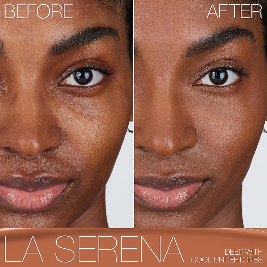 Skin in its best light. NARS Light Reflecting Foundation on innovatiivinen meikin ja ihonhoidon hybridi, jossa yhdistyvät keskitasoinen, kerrostettava peittävyys ja luonnollisen säteilevä lopputulos. Meikkivoide tasoittaa välittömästi ihon sävyä ja rakennetta, peittää epäpuhtaudet, tummat läiskät ja punoituksen – ja saa ihon näyttämään tasaisemmalta jo ensimmäisellä levityksellä (+93 %*). Kuuden viikon päivittäisen käytön jälkeen ihon kirkkaus paranee, jopa silloin kun meikki on poistettu**. Koostumus sisältää 70 % ihoa hoitavia ainesosia, jotka vahvistavat ihon suojamuuria ja suojaavat sitä ympäristön haittavaikutuksilta ja sinivalolta. Sopii kaikille ihotyypeille, myös herkälle iholle.