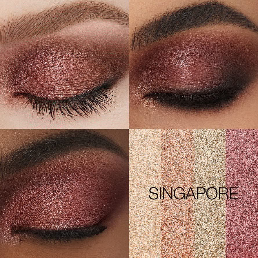 NARS Quad Eyeshadow on saatavilla neljässä sävykokonaisuudessa: Taj Mahal, Orgasm, Mojave ja Singapore. Pigment Power Suspension -teknologia varmistaa intensiivisen värin, joka levittyy tasaisesti ja kestää koko päivän. Silmämeikkiä voi kerrostaa ja lopputulos on virheetön. Jokainen sävy tuntuu silkinpehmeältä iholla kolmessa eri efektissä: matta, hohto ja satiini.