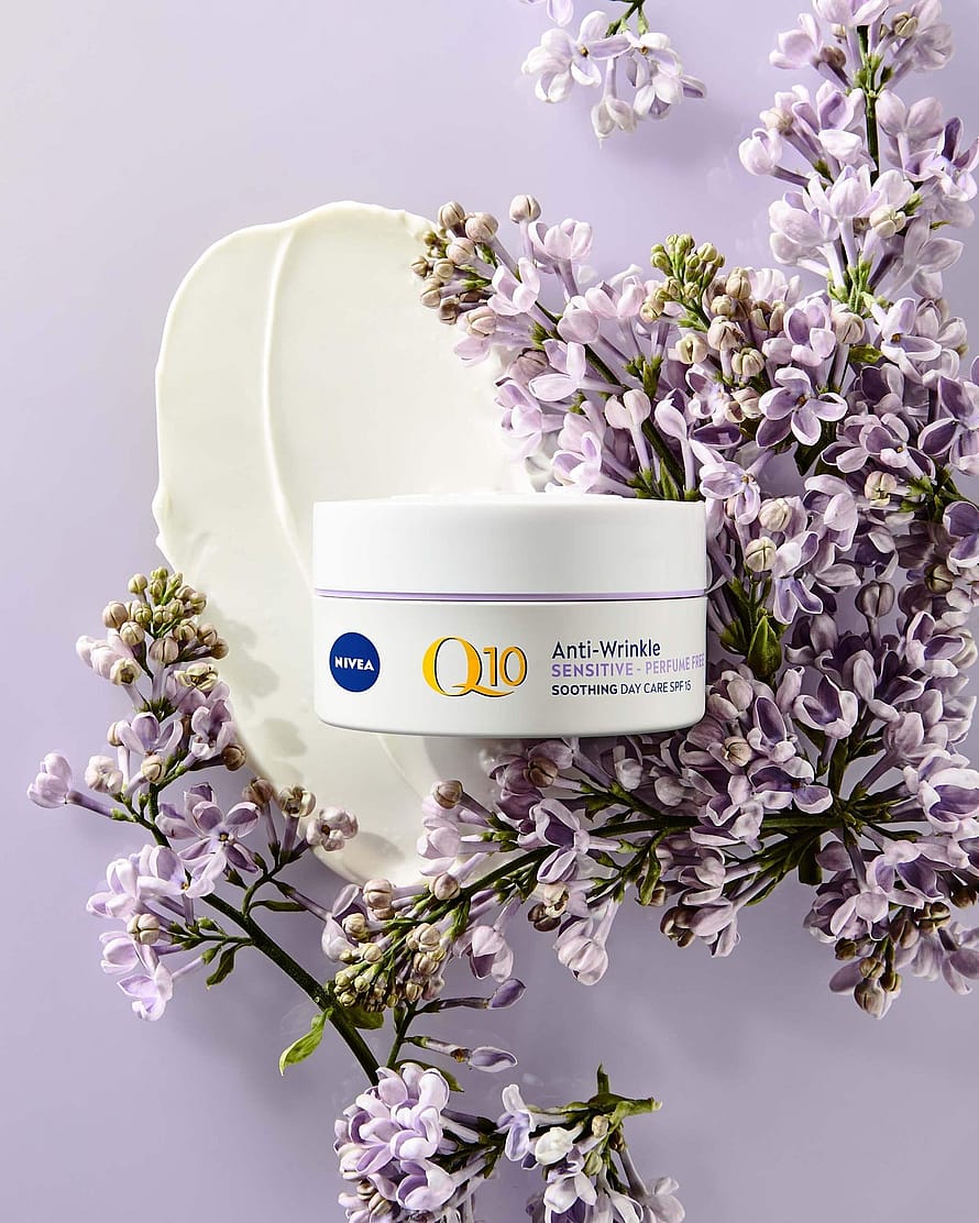 NIVEA Q10 Sensitive Perfume Free Day Cream -päivävoiteen Q10 on 100% identtinen ihon oman Q10:n kanssa. Fermentointiprosessilla tuotettu puhdas Q10 on luonnollinen antioksidantti, joka suojaa tehokkaasti pieniä juonteita ja ryppyjä vastaan. Q10:n lisäksi tämä hajusteeton päivävoide sisältää rauhoittavaa ja punoitusta lievittävää lakritsijuuriuutetta. Ainesosat toimivat harmoniassa ihosi oman, suojaavan mikrobiomin kanssa. Mikrobiomi on kuin "näkymätön kerros" iholla: joukko tärkeitä, luonnollisia bakteereja, jotka pitävät ihosi terveenä. Suojakerroin 15 suojaa UV-säteiden aiheuttamilta vanhenemisen merkeiltä.