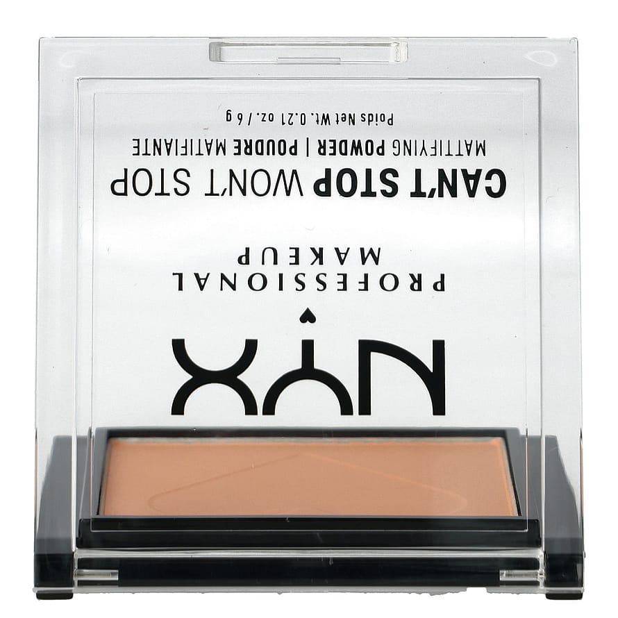 NYX Professional Makeup Can't Stop Won't Stop Mattifying Powder -puuteri antaa iholle välittömästi mattapintaisen lopputuloksen ja hillitsee ihon kiiltoa ja rasvaisuutta. Kevyt, vegaaninen koostumus* antaa iholle tasaisen, matan lopputuloksen näyttämättä kuivalta, kakkumaiselta tai tunkkaiselta. Läpikuultavat, kerrostettavat sävyt sulautuvat helposti iholle asettumatta pieniin juonteisiin ja antavat tasaisen, sileän lopputuloksen. Mattapuuteri pidentää meikkivoiteen kestoa ja mattapintaa tahraamatta, leviämättä ja muuttumatta! Puuteri hillitsee ihon kiiltoa koko päivän ja antaa erittäin mattapintaisen lopputuloksen, joka ei vaadi korjailua päivän mittaan.