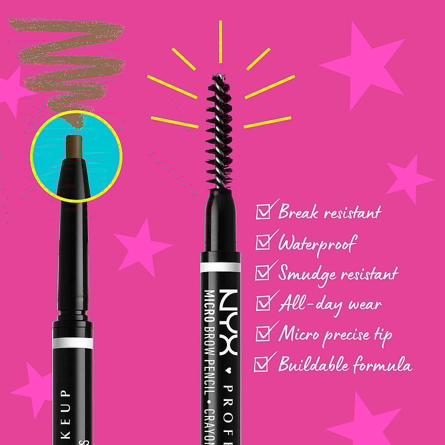 Muotoile, korosta ja täytä kulmakarvojasi NYX Professional Make Up Micro Brow Pencili -kulmakynällä. Ohuen kärjen ansiosta tämä kaksipuolinen kulmakynä tekee levityksestä tasaista ja tarkkaa. Vegaaninen koostumus* peittää jopa pienimmät karvat värillä ja antaa kulmille luonnollisen viimeistelyn. Tuotteen avulla voit luoda haluamasi kulmakarvatyylin: ohuet, määritellyt tai täyteläiset ja luonnolliset? Micro Brow Pencil antaa sinulle kauniit kulmakarvat juuri haluamassasi tyylissä!