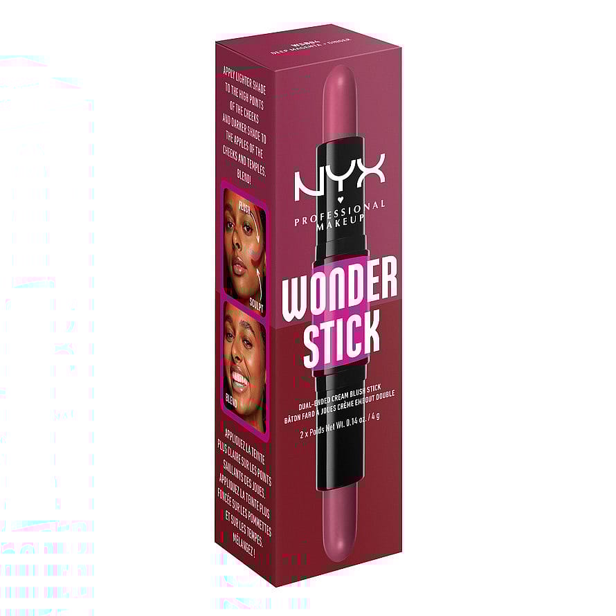 NYX Professional Makeup esittelee Wonder Stick kaksipäisen poskipunapuikon. Ensimmäinen kaksipäinen poskipunapuikkomme. Antaa väriä ja muotoilee kahdella helpolla askeleella. Anna kasvoillesi eloa hyaluronihappoa sisältävillä koostumuksilla kirkkaissa punaisissa sävyissä. Aloita levittämällä tummempaa sävyä antamaan muotoa kasvoillesi. Levitä sen jälkeen vaaleampaa sävyä poskipäillesi. Jos haluat luonnollisemman näköisen lopputuloksen, voit käyttää vain yhtä sävyä. Luonnollinen vai glam-look? Luo oma lookisi! Vegaaninen koostumus*.