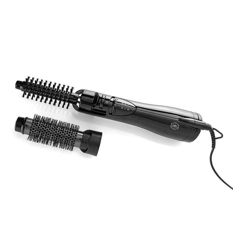 Kaksi vaihdettavaa harjapäätä saavat aikaan täydelliset kiharat tai tekevät hiuksista tuuheat