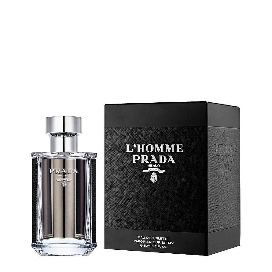 L’Homme Prada Eau de Toilette on hienostunut saniaistuoksu, jossa yhdistyvät mausteinen mustapippuri, raikas geranium ja aistikas patsuli. L’Homme Prada Eau de Toilette -tuoksussa sekoittuvat klassiset ja odottamattomat ainesosat, jotka kuvastavat maskuliinisuutta. Pullossa on ikonista mustaa Pradan saffianonahkaa. Pullon etupuolella on Pradan alkuperäinen, hopeanvärinen logo on hieman korotettuna. Sisällä oleva peili kuvastaa L’Homme Pradan monitahoista luonnetta.