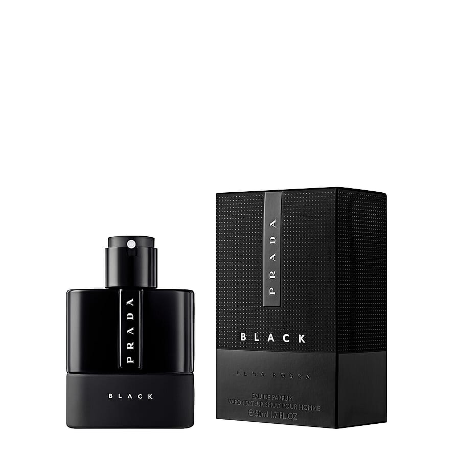 Prada Luna Rossa Black eau de toilette on viettelevä metsäinen tuoksu, jolle antaa intensiivisyyttä raikkaan roseepippurin, magneettisen kumariinin ja aistikkaan ambran sävyt. Prada Luna Rossa Black mukailee suurkaupungin sykettä ja sen uusien ulottuvuuksien löytämistä jokapäiväisessä mielenmaisemassa. Tuoksu vetovoimaiselle miehelle, joka kaipaa hienostuneisuutta ja suorituskykyä kaikissa tilanteissa. Prada Luna Rossa Black -pullo symboloi urbaania ulottuvuutta. Syvän ja tyylikkään mustan pullon kontrastina on kiiltävä valkoinen logo.