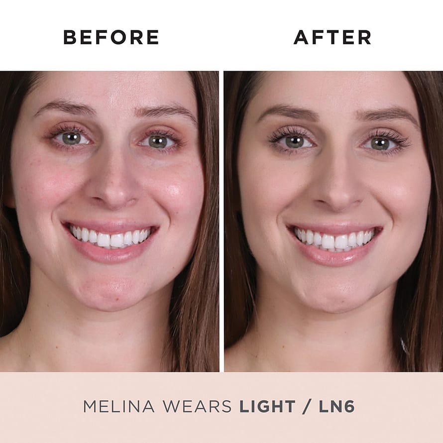 Käytä levitykseen leveää ja tiheää Chisel-sivellintä (ei sisälly pakkaukseen), jolla saat peittävän kerroksen ja kauniin viimeistelyn. Kostuta sivellin mineraalimeikkivoiteessa ja levitä iholle pyörein liikkein saadaksesi tasaisen ja virheettömän meikin. Lisää voidetta, jos haluat peittävämmän tuloksen.