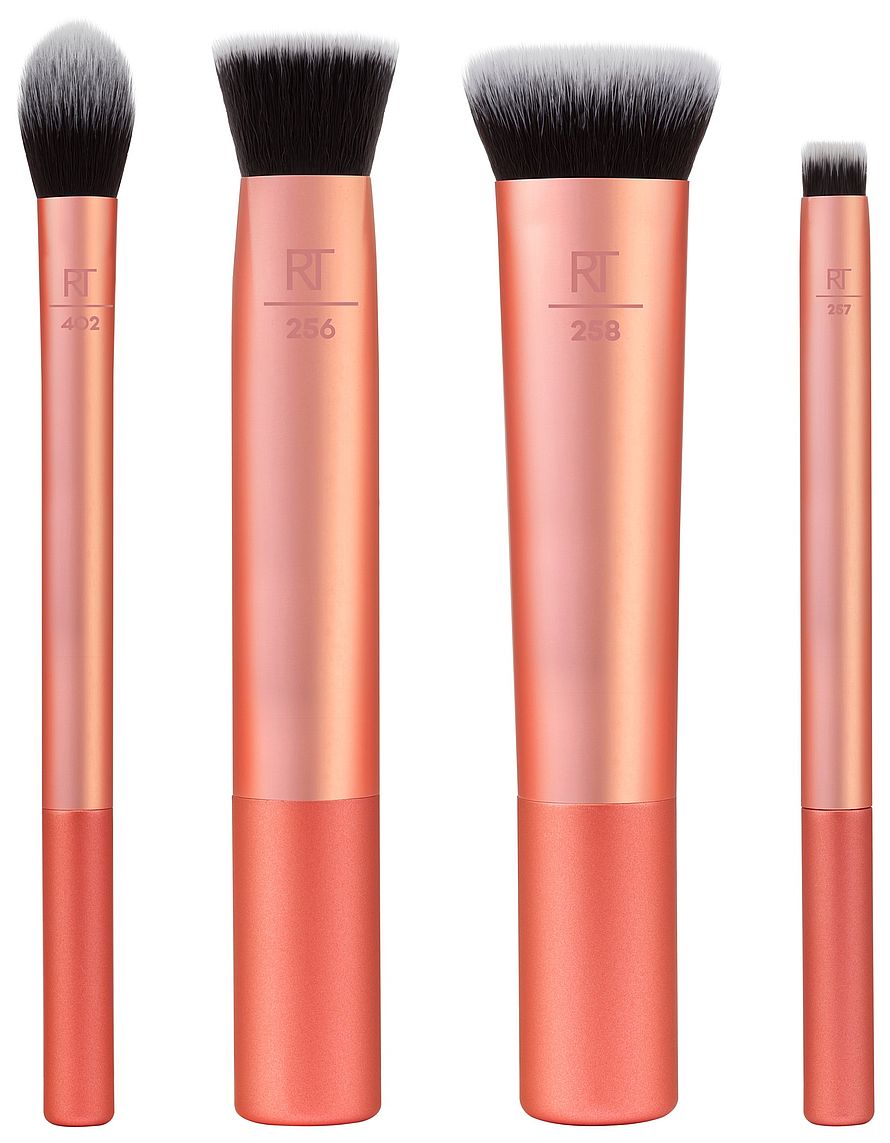 Real Techniques Face Base -sarja sisältää 4 valittua monikäyttöistä meikkisivellintä, jotka auttavat sinua saavuttamaan tasaisen, yhtenäisen ja sileän pohjan. Sarjaan kuuluvat uusi 256 Ultra Buff -sivellin, uusi 257 Small Conceal -sivellin, uusi 258 Flat Contour -sivellin ja 402 Setting -sivellin. Levitä meikkivoidetta, sekoita peitevoidetta, muotoile kermacontouria ja kiinnitä meikki puuterilla - Face Base -sarjan avulla voit tehdä kaiken aivan kuten ammattilainen. Tässä setissä on kaikki mitä tarvitset saumattoman pohjan luomiseen, joka pysyy paikallaan. Aloita kevyellä kermaisella meikkivoiteella ja käytä sivellintä 256, peitä tarkasti siveltimellä 257, muotoile poskipäät siveltimellä 258 ja viimeistele siveltimellä 402. Real Techniques Face Base -siveltimet toimivat parhaiten kermatuotteiden kanssa, mutta ne ovat monikäyttöisiä ja voidaan käyttää myös jauheiden ja nestemäisten tuotteiden kanssa. Siveltimissä on pidennetyt alumiiniset hylsyt ja ne ovat 100 % vegaanisia, eläinkokeettomia ja UltraPlush-synteettisiä.