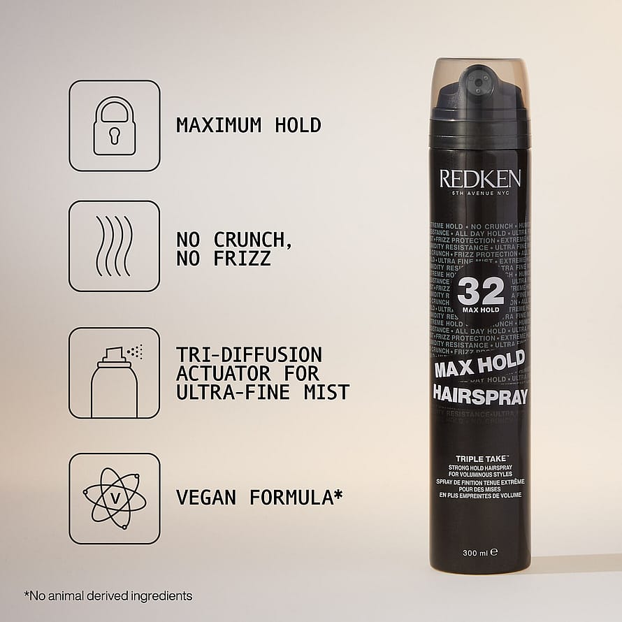 Max Hold -hiuskiinne tarjoaa pitkäkestoista tuuheutta ja pitoa, ilman hiuskiinteille perinteistä kovettumista. Tämän ammattitason tuotteen koostumus on erittäin hienojakoinen ja nopeasti kuivuva.Saavuta maksimaalista pitoa maksimaalisille tyyleille! Redkenin Max Hold -hiuskiinne sisältää Triple Mist Diffusion -systeemin, joka kietoo hiuskuidun voimakkaalla pidolla ja sitoo hiustyylisi tiukasti paikoilleen kovettamatta sitä. Tämä äärimmäisen pidon hiuskiinne lukitsee tyylisi paikoilleen ja vastustaa kosteutta 24 tunnin pidolla. Innovatiivinen suutin tarjoaa hienojakoisen, nopeasti kuivuvan ja kevyen suihkeen.