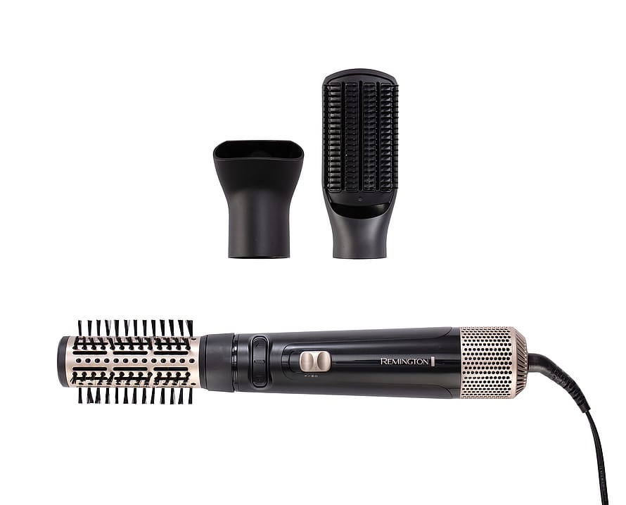 Aloita hiusten kuivaaminen föönisuuttimella, ja kuivaa hiukset lähes kuiviksi. Pehmeä pyörivä 40mm harja keraamisella pinnoitteella lisää nostoa tyveen ja muotoilee latvoja. Nappia painamalla hiuksesi ohjautuvat automaattisesti pehmeäharjaisen harjan ympärille. Koska harja on suunniteltu pyörimään kumpaankin suuntaan, voit saavuttaa symmetrisen tyylin molemmille puolille. Lapioharjalla voit suoristaa ja silottaa hiuksiasi, saavuttaen silkkisen sileän lopputuloksen.Ilmakiharrin on erittäin tehokas, 1000W. Voit valita kahdesta lämpötilasta ja puhallusnopeudesta, juuri sinun hiustyypillesi sopivat asetukset. Viimeistele tyylisi viileäpuhalluksella, joka kiinnittää muotoilun, ja takaa pitkäkestoisen lopputuloksen.