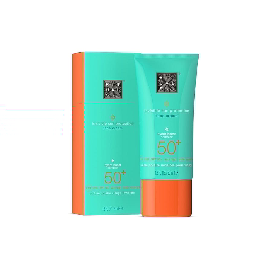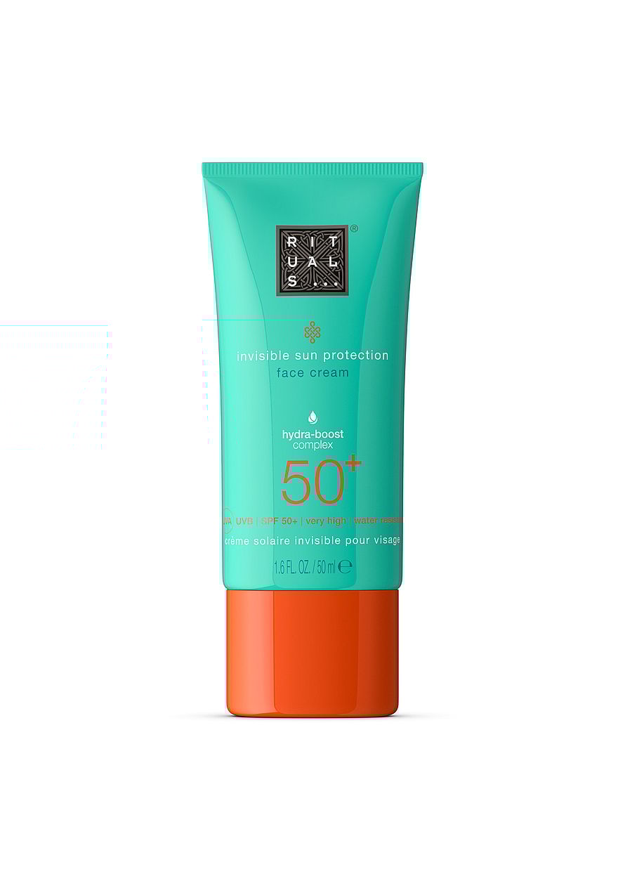 The Ritual of Karma Sun Protection Face Cream SPF 50+ antaa jatkuvaa ja laajakirjoista suojaa, on vedenkestävä ja imeytyy nopeasti ihoon. Tämä Hydra-Boost-yhdistettä sisältävä kosteuttava kasvovoide auttaa rauhoittamaan kuivaa ja janoista ihoa ja palauttamaan ihon kimmoisuuden ja elastisuuden. Ei jätä iholle valkoista sävyä eikä kuivu paakuiksi, vaan iho saa kauniin, lähes mattapintaisen ilmeen. Sisältää tehokasta luonnollista antioksidanttiyhdistelmää, jonka pohjana on valkoista teetä, E-vitamiinia ja lootuksen kukkaa, sekä sekoituksen puna- ja mikroleviä, jotka auttavat tehostamaan aurinkosuojakerrointa luonnollisella tavalla ja suojaamaan ihoa. Levitä säännöllisesti kasvojen suojaamiseksi auringon UVA- ja UVB-säteiden aiheuttamilta vaurioilta. Muista käyttää myös pilvisinä päivinä!