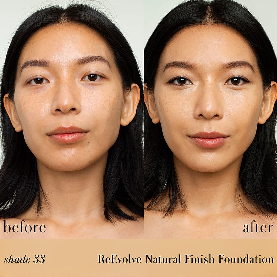 ReEvolve Natural Finish Liquid Foundation on silikoniton, ei-komodogeeninen meikkivoide, jonka ihoa hoitavat ominaisuudet tuovat ihosi parhaat puolet esiin. Perustuu innovatiiviseen ainesosaan Tightenyl™, joka parantaa ihon rakennetta ja tekee siitä kiinteämmän, sekä kosteuttavaan skvalaaniin ja rauhoittavaan aloe veraan. Hikeä ja vettä hylkivä koostumus, joka korjaa tehokkaasti virheitä ja pitää ihon kosteutettuna koko päivän. ReEvolve Natural Finish Liquid antaa luonnollisen silkkisen lopputuloksen, ja sitä on saatavana 16 sävyä kätevässä pumppupullossa, jossa on täydennystoiminto.
