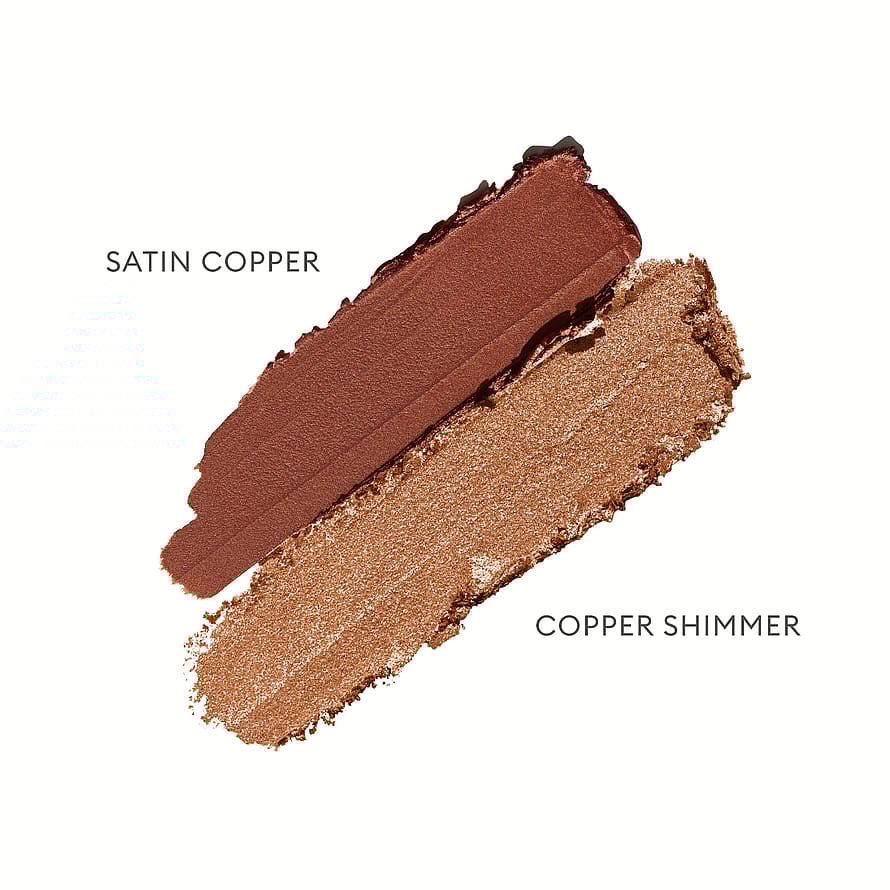 Pigmenttipitoiset luomivärit - yksi kermainen ja toinen puristettu -, jotka tasoittuvat näkyvästi ja antavat mahdollisuuden luoda useita erilaisia meikkilookkeja. Rakennettavissa oleva kermainen satiinivarjostin, jota käytetään yksinään, antaa puhtaan tasaisen värin kansille, kun taas useammat kerrokset lisäävät kylläistä väriä ja näyttävät rohkeammalta. Puristettu hohtava varjo antaa hajanaisen hehkun, kun sitä käytetään yksinään tai painetaan voidepohjan päälle tehostaakseen hohtoa.