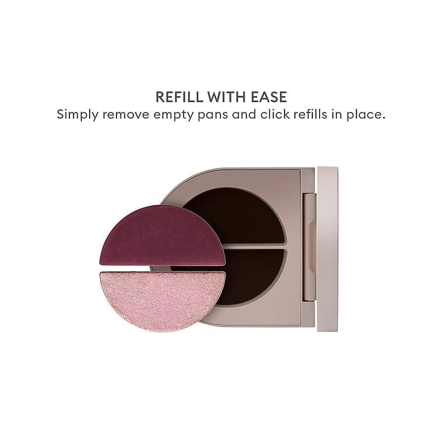 Käytä jokaista sävyä yksinään, yhdessä tai kerroksittain saadaksesi lisävoimakkuutta. Pyyhkäise satiinivarjo kannen päälle. Paina hohtava varjostin paikalleen saadaksesi moniulotteisen ilmeen.